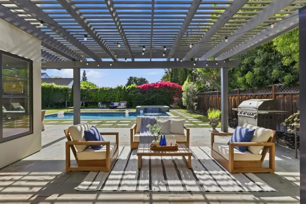 Welcome to 819 Morse Street, an elegant 5 bedroom, 4.5 bath Monterey Colonial in San Jose’s Rose Garden. Originally built in 1937 and completely rebuilt in 2016, this home blends timeless charm with modern luxury. The open-concept living room features a gas fireplace, box-beamed ceilings, and a 12-ft folding glass wall creating seamless indoor-outdoor living. The chefs kitchen includes a Wolf 48″ 5-burner range, Sub-Zero refrigerator, marble countertops, and a large Caesarstone island with prep sink, drawer dishwasher, and warming drawer. A butler’s pantry offers a wine refrigerator and built-in bar. The spacious primary suite features vaulted ceilings, a walk-in closet, and a spa-like bath with heated floors, dual vanities, soaking tub, and separate water closet. The backyard offers a bluestone patio, pergola, designer lighting, and a custom pool with automatic cover. Additional features include dual-zone HVAC, EV charger, fire sprinklers, solid core doors, hardwood baseboards and crown molding, and a CertainTeed roof. Perfectly situated in the heart of Silicon Valley, this home is moments from top restaurants, boutique shops, major tech campuses, highways, Farmers Market, Santana Row, Westfield Shopping Center, Diridon Caltrain Station, and San Jose International Airport.