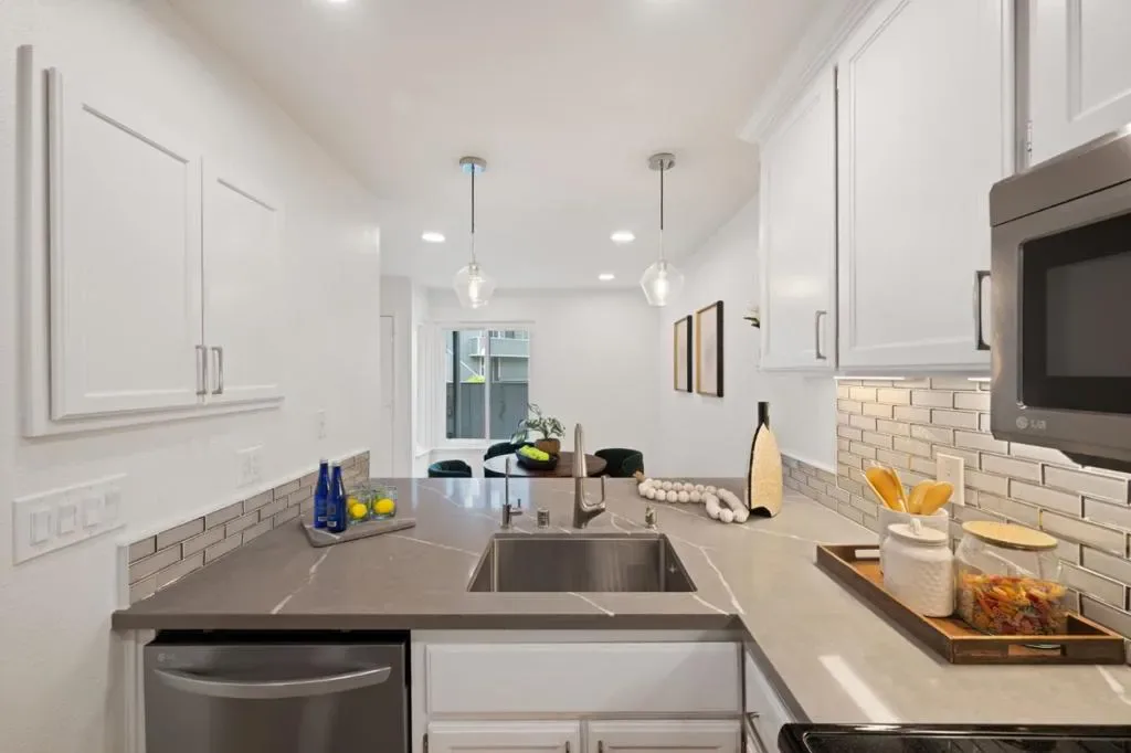 Welcome to 932 La Barbera Dr – A beautifully updated ground-floor condo with garage in a prime San Jose location! This 2 bed, 2 bath home offers 987 sq ft of modern living with a fully remodeled interior featuring new LVP flooring (2026), fresh interior paint including garage (2026), and recessed lighting in bedrooms. The stylish kitchen (remodeled 2021) boasts quartz countertops, custom tile backsplash, LED under-cabinet lighting, LG stainless steel appliances and reverse osmosis drinking water system. Both bathrooms updated in 2024 with contemporary finishes. Enjoy year-round comfort with Mitsubishi mini-split HVAC (2024) and dual-pane Milgard windows (2022). Spacious living area features large windows and electric fireplace. Primary suite includes two closets and en-suite bath. Additional highlights: in-unit laundry, smart home features, Ring security, private patio with electrical, and attached 1-car garage with storage. HOA is only $452.34 includes a community pool and spa. Excellent access to Hwy 280, 880, 17 & 87, and close to Willow Glen, Campbell, Santana Row, parks, shopping, and dining.