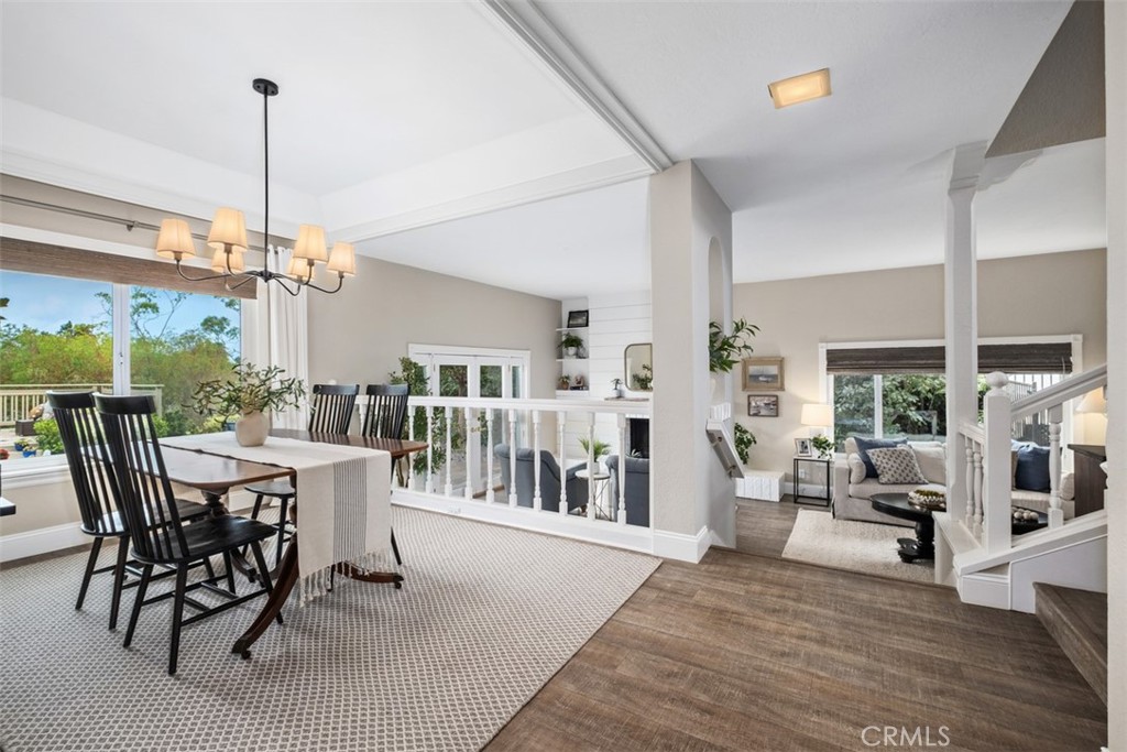 Perched in the peaceful Los Corrales neighborhood of San Juan Capistrano, this expansive 4-bedroom, 3-bath home offers striking views, exceptional privacy, and a thoughtfully designed multi-level layout spanning approximately 2,885 sq ft. From the moment you step inside, soaring ceilings and abundant natural light create an open, airy atmosphere that carries throughout the home. Designed with both comfort and style in mind, the interior features updated flooring, fresh paint, architectural details, and well-proportioned living spaces ideal for gathering or unwinding. The main living areas flow effortlessly, with multiple vantage points to enjoy the surrounding hillsides and outdoor scenery. The kitchen serves as a central hub of the home, offering granite countertops, stainless steel appliances, a generous island with gas cooktop, walk-in pantry, and a casual dining area that connects seamlessly to the adjacent family room—perfect for everyday living or hosting guests. French doors extend the living space outdoors to a private backyard retreat. Set on an approximately 10,440 sq ft lot, the backyard is a true sanctuary featuring custom hardscape, mature landscaping, fruit trees, a calming fountain, and a raised deck ideal for taking in the panoramic mountain views and sunsets. The setting offers a rare sense of seclusion while remaining close to everything. A bedroom and ¾ bathroom on the main level provide flexible use for guests, multigenerational living, or a home office. Upstairs, three additional bedrooms are complemented by two bathrooms, including a recently upgraded upstairs bath with new quartz countertops, sinks, and modern fixtures. The spacious primary suite is a standout, offering tranquil views, a sitting area, a large walk-in closet, and a spa-inspired bathroom with soaking tub, dual vanities, and a separate tiled shower. Additional highlights include a 2-car garage with laundry hookups and overhead storage, epoxy flow re-pipe, newer roof, updated HVAC system, and completed termite clearance for added peace of mind. Conveniently located near parks, schools including St. Margaret’s, golf courses, shopping, and historic downtown San Juan Capistrano, this home blends space, privacy, and long-term value in one of the area’s most desirable communities.