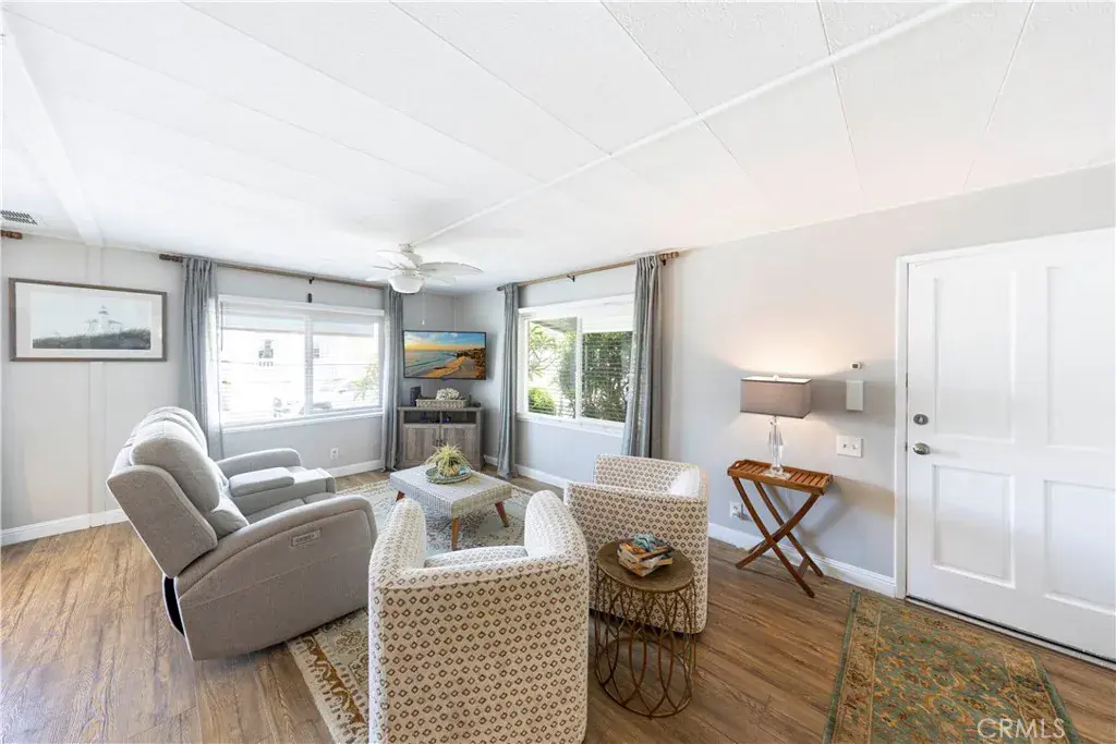 Spacious 2BR/2BA + office/3rd BR in desirable 55+ community near downtown San Juan Capistrano & Doheny Beach. Remodeled master & guest baths, updated kitchen w/new cabinets, counters, backsplash, and extended breakfast bar. New laminate wood flooring, ceiling fans, and screened front porch w/café lighting. Private backyard oasis with orange & lemon trees, roses, plumeria, bird of paradise, perennials, succulents, water fountain, and gate to scenic San Juan Hills & community amenities. New 30-yr roof, 2025 HVAC, newer water heater, electric panel, energy-efficient windows, smart thermostat. Seasonal trolley stop at community entrance to SJC, Dana Point, & Laguna Beach. Pet-friendly park w/clubhouse, pool, jacuzzi, putting green & more!