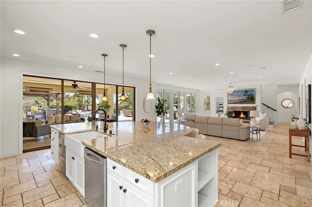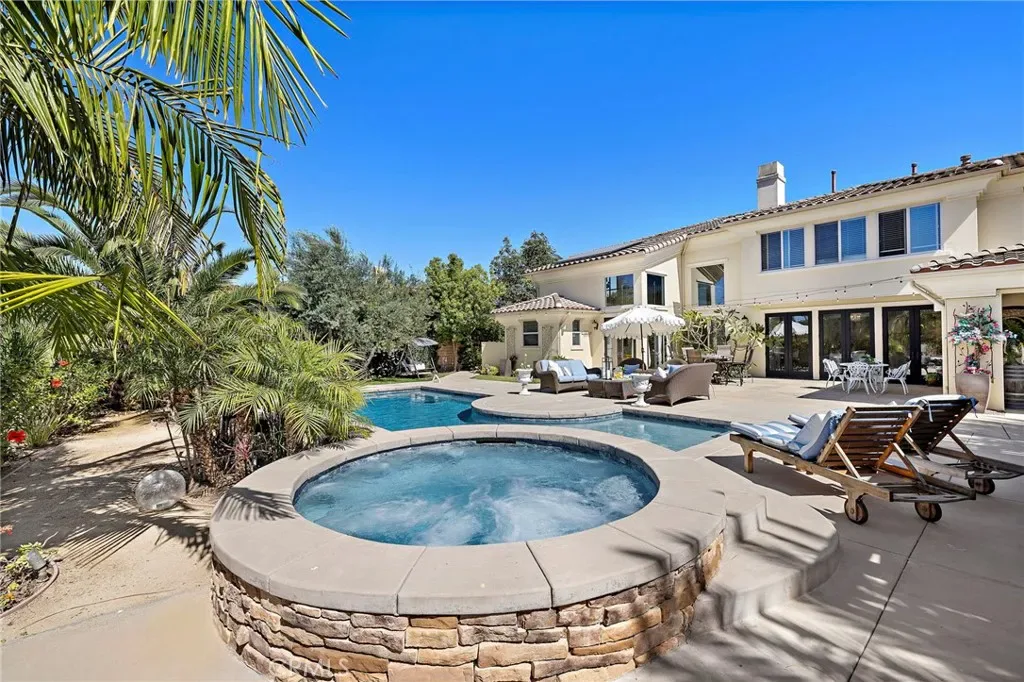 A bright and open feel with abundant natural light welcomes you upon entry. Enjoy the incredible pool set against views of rolling hills and even the Saddleback Mountains—an ideal place to spend your time. The backyard also features the always-popular Capistrano Room, offering the feel of outdoor living with the comfort of indoor amenities. The functional floor plan and timeless design make this home ideal for both everyday living and entertaining. With approximately 5,120 square feet, the first level includes a bedroom with an en suite bathroom, a game room, a wet bar, and more. The second story features a spacious loft and four additional bedrooms. Inside, the home is equipped with high-end appliances, while the backyard boasts a full kitchen with custom cabinetry. Elegant chandeliers illuminate the foyer and main level, which showcases tumbled travertine flooring, while the upstairs features wide-plank luxury vinyl flooring. Additional highlights include a Trimlight system, built-in sound system, top-of-the-line pool equipment, and more. Conveniently located near award-winning schools, a variety of restaurants, iconic downtown San Juan Capistrano, shopping, picturesque beaches, and easy access to the 5 freeway and 241 toll road, this is a rare opportunity to own an exceptional estate.