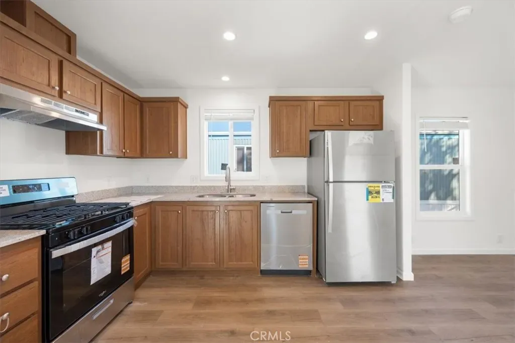 The well-appointed kitchen features sleek stainless steel appliances and ample cabinetry, creating a modern and inviting space that flows seamlessly into the main living area—perfect for everyday living and entertaining. Indoor laundry hookups add to the home’s convenience, while contemporary finishes throughout enhance its clean, move-in ready appeal.