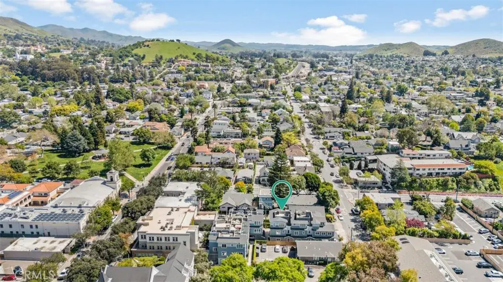 Experience luxurious living in this exquisite 2 bedroom, 2 bath condominium in the heart of downtown San Luis Obispo! Designed by an exclusive designer and artist, this property is tailor made for the discriminating buyer looking for full or part-time living nestled in the coveted downtown quarter with easy access to restaurants, shops, theaters, museums, galleries, services, farmers’ market, the Cal Poly campus, and more. From the fabulous chef’s kitchen to the executive office and primary suite with a steam shower, this home offers it all. Custom cabinetry, marble surfaces, hardwood flooring, Gimbal lighting, Vola fixtures, Sonos sound systems, mini-split AC/heating zones, and elevator stops on each level are just a few of the features throughout the home. In addition to the primary suite and adjacent office, the second bedroom offers flexibility with access to a full bath. Take the elevator to the beautiful rooftop deck complete with a barbeque and fireplace. Here you will enjoy views of the city and surrounding hills. The two-car garage, with additional outdoor parking, boasts a custom workbench, cabinets with frosted glass doors, sliding library ladder, utility sink, and epoxy floor. This home is perfect for entertaining, star gazing, remote working, and a perfect secluded getaway. Don’t miss this rare opportunity to immerse yourself in an upscale urban lifestyle in the heart of the Central Coast. See attached Amenities List. Information not verified.