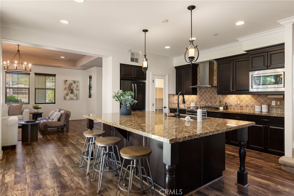 Designed with an open and inviting layout, the heart of the home is a beautifully appointed kitchen that flows seamlessly into the main living areas and extends to a covered patio, creating a sophisticated indoor–outdoor lifestyle. Natural light fills the home, enhancing the sense of space and connection to the surrounding landscape.