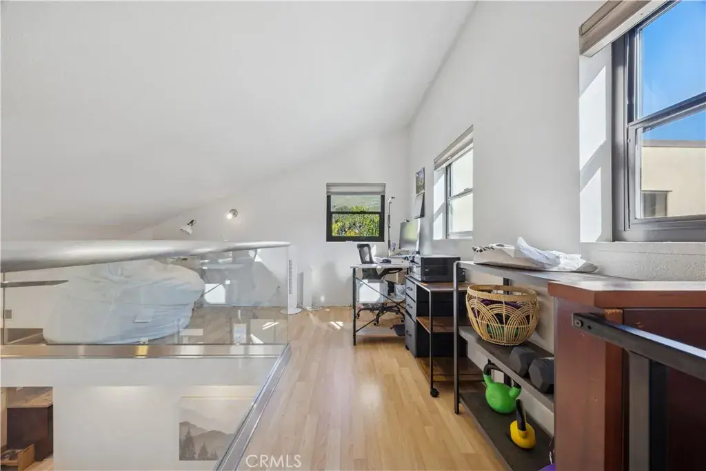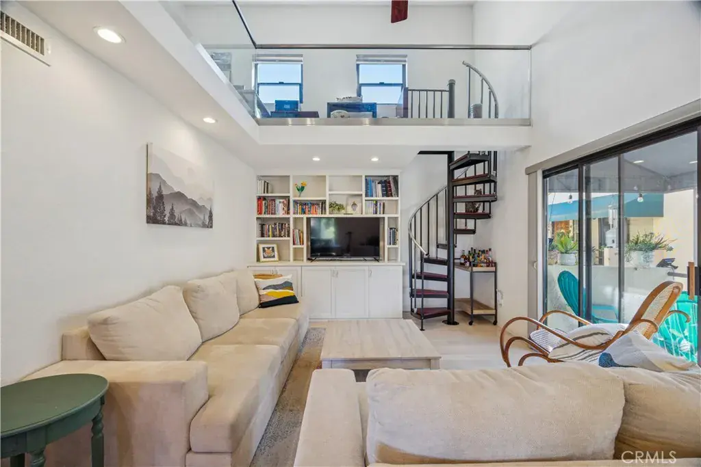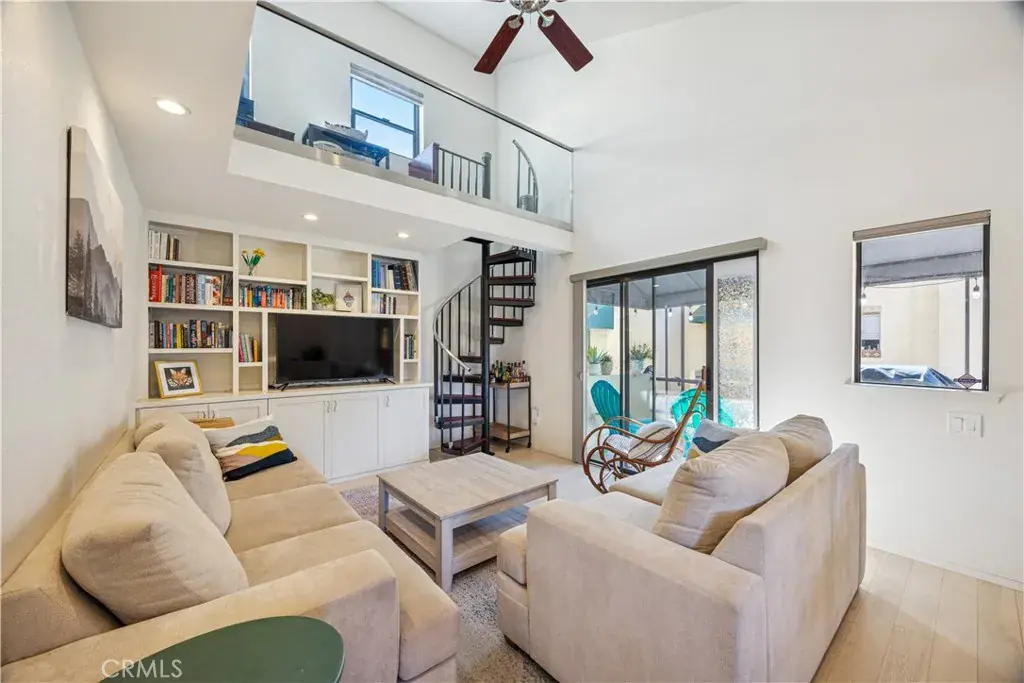 Elegantly updated 1-bedroom, 1-bath residence featuring a versatile loft and an attached single-car garage, offering a refined blend of style, comfort, and functionality. Thoughtful upgrades include stainless steel appliances, granite countertops, and multiple skylights that bathe the interior in natural light. Privately positioned behind a secluded gate and accessed via a dedicated staircase, the home enjoys a quiet, exclusive setting removed from the main walkway. The open-concept layout effortlessly connects the living, dining, and kitchen spaces, creating an inviting environment ideal for both everyday living and sophisticated entertaining. A striking spiral staircase rises from the living room to a loft area—ideal for a home office, den, or additional storage—while the private balcony captures pleasing views and provides a serene retreat, perfect for morning coffee or unwinding at sunset. The generously sized bedroom is filled with natural light, complemented by exceptional storage throughout the residence. Multiple interior closets provide ample space, while a conveniently located exterior closet beneath the staircase offers additional, rarely found storage. The well-appointed bathroom is intelligently designed with pocket doors and dual vanities, allowing it to function as an en suite while maintaining privacy and convenient access from the main living area. The attached garage adds further versatility, with a deep layout accommodating multiple shelving units in addition to parking, and is complemented by additional guest parking throughout the community. Recent enhancements include a newly constructed exterior staircase, an updated deck, and a new lower patio. Ideally situated in one of San Luis Obispo’s most desirable neighborhoods, just moments from the Jennifer Street Bridge, this residence provides effortless access to downtown, as well as close proximity to the Terrace Hill Loop and the SLO Railroad walking and biking path—delivering an exceptional lifestyle in a premier location.