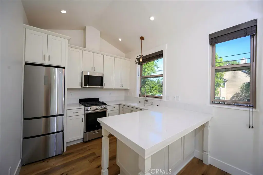 Two units; 1405 is the main house with street entry. 1407 is the studio apartment or ADU. Seller purchased this property directly from the builder. Fabulous location in San Luis Obispo. Shows like a model home and has rarely been lived in. Street level entry into the great room with raised ceilings and canned lighting. Wood flooring. Thermador range and microwave in kitchen along with Kitchen Aid refrigerator. Quartz countertops. There is a 1/2 bath as you enter the great room. The laundry is also on the first floor with washer and dryer included in the sale. Utility sink in the laundry room with cabinets. There are two bedrooms; either one could be the master. One bathroom has a tub/shower with one sink and the other bedroom has walk-in shower with double sinks. Bedrooms have carpet and both have ceiling fans. One bedroom has a balcony. Large two car attached garage with storage. The studio is accessed up the stairs adjacent to the garage. It is a great room with a full kitchen; refrigerator, range and microwave. Bathroom has walk-in-shower. This unit has rarely been used. There is an area just outside the front door for laundry hook-ups. Plush landscape as you enter the home. Decorative pavers on the driveway. There are only 4 homes in this quaint area of SLO. No HOA. 3 miles to the SLO airport. Live in one home and rent the other. Easy to show. Call agent for any questions.