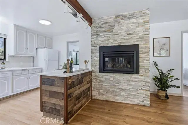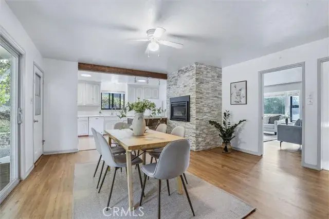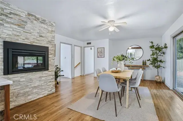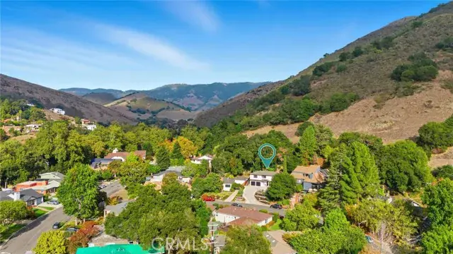 The kitchen and dining area open seamlessly to a covered patio, ideal for enjoying San Luis Obispo’s ideal year-round weather. Mature oak trees provide shade and privacy, while the picturesque mountain views create a tranquil backdrop.