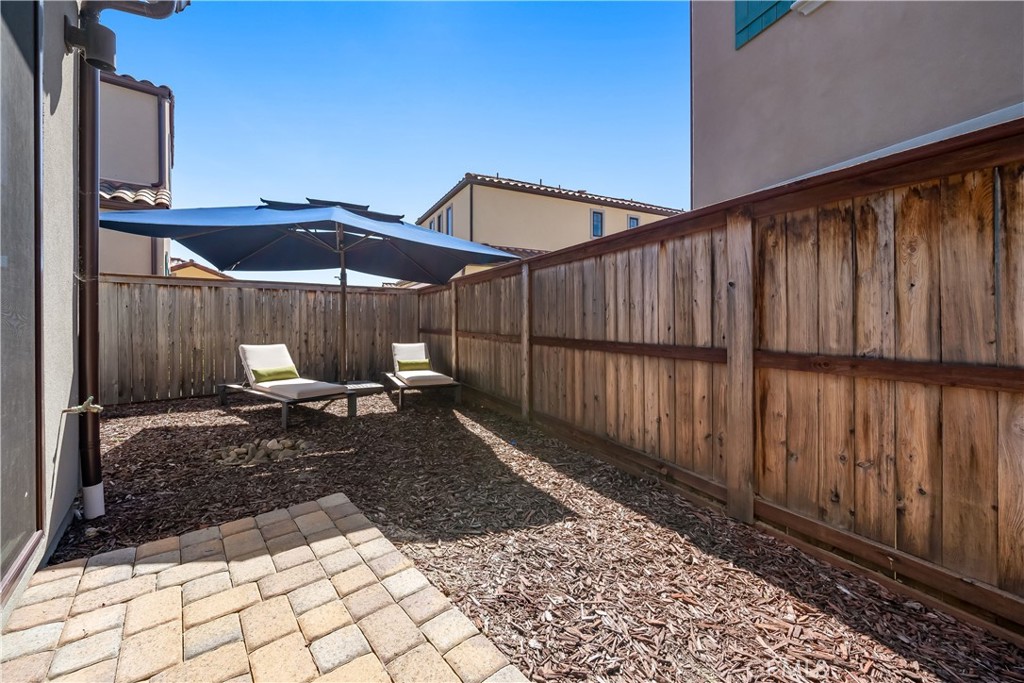 The dual-door two-car garage features overhead storage, providing ample room for surfboards and mountain bikes, along with a 220-volt outlet for EV charging. Additional highlights include a laundry area with upper cabinetry, upgraded plush carpet, keyless entry, video doorbell, tankless water heater, water softener, air conditioning, and hand-troweled acrylic color-coat stucco.
