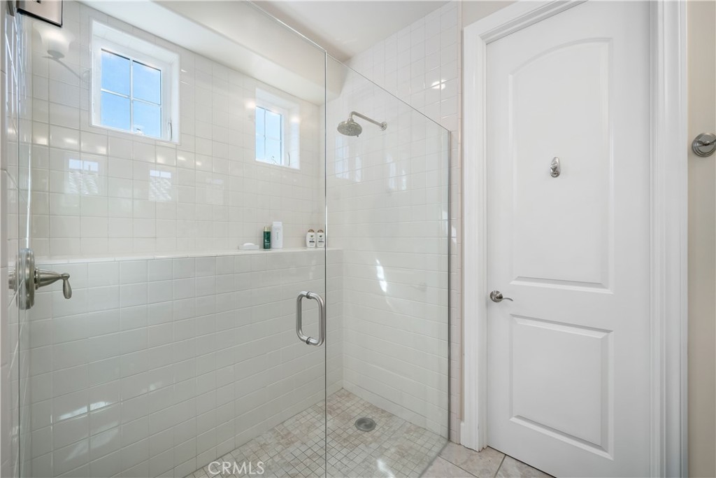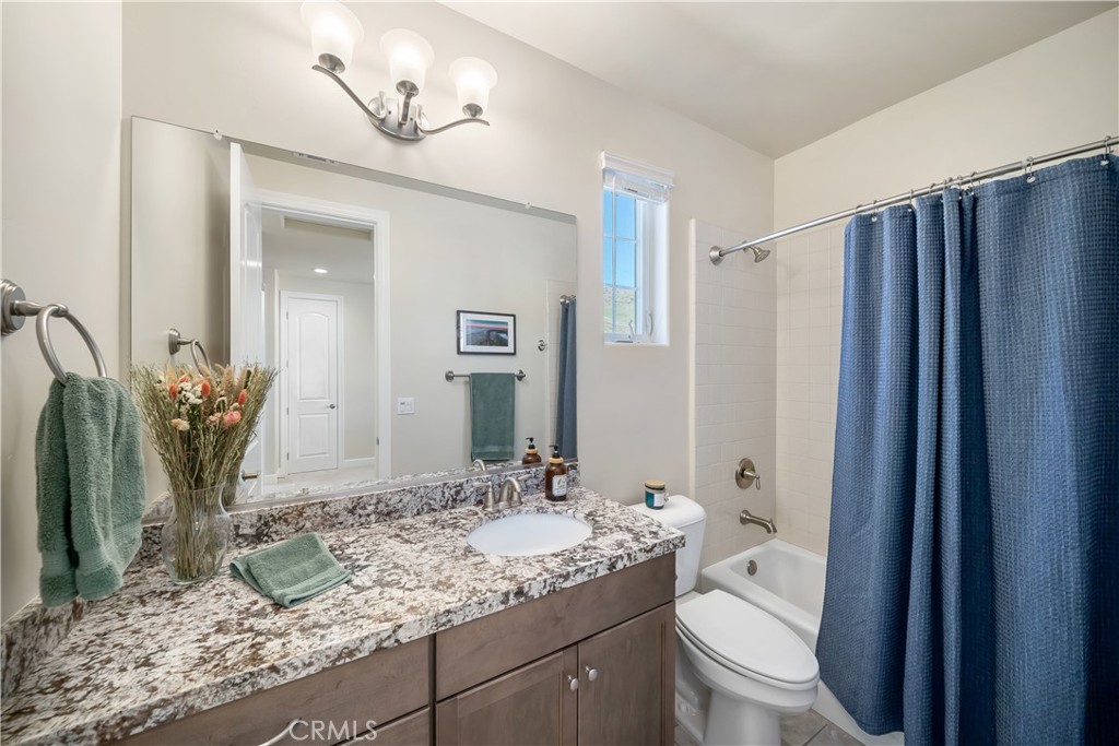 The private owner’s suite offers a peaceful retreat with breathtaking mountain views, a walk-in closet, and a tastefully upgraded bathroom with dual sinks, granite countertops, and a curbless walk-in shower with a frameless enclosure and tiled surround.