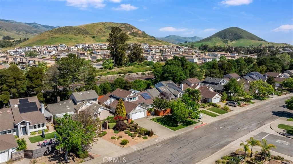 Near the opening to Edna Valley, within the “Flower” streets is this well-located generous 3 bedroom 3 bath home with recent improvements. Substantially single-level, the multiple updates include areas of kitchen, living area and dining, primary bedroom suite, second bedroom, as well as efficient office area. Upstairs is a third bedroom, but also ensuite with a walk-in closet, and built-in cabinetry with beverage refrigerator. The semi-private expansive entry patio with decorative gate is an entertainer’s retreat. Custom landscape design and plantings create a lovely setting, starting at the street. Citrus trees are a welcome feature too! Fully-owned solar installed in 2013, system is 3.57 kW. Mini-split HVAC systems in several areas of home provide both heat and cooling comfort. Location is ideal for access to sought-after schools, proximity to recreation and open space. Square footage source is County Records, but bedroom and bathroom count is different than public records.
