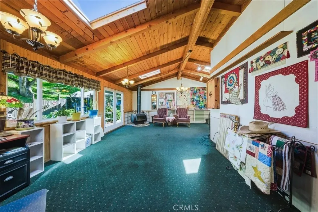 At the heart of the estate stands a stunning 2,544 sq. ft. custom-built main residence featuring 2 bedrooms and 2 bathrooms, crafted from rich pecky cedar with timeless character and artisan detail throughout. Panoramic windows frame spectacular views of the surrounding natural landscape, flooding every room with natural light and seamlessly connecting indoor living to the beauty outside. It’s not uncommon to glance out and spot doe and bucks grazing peacefully in the grass just beyond your door.