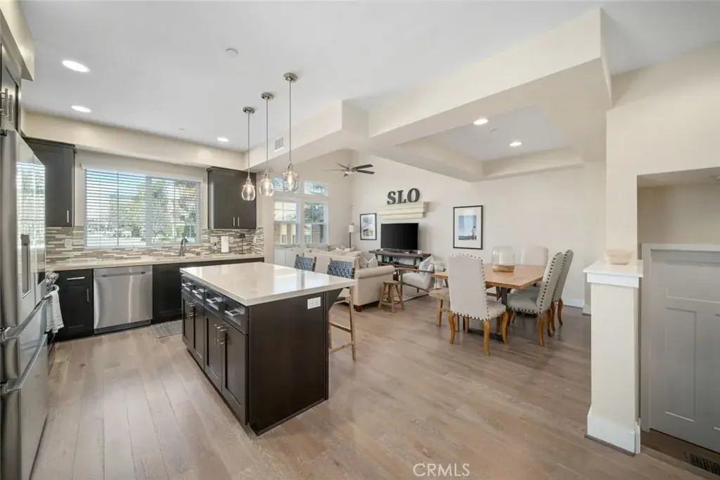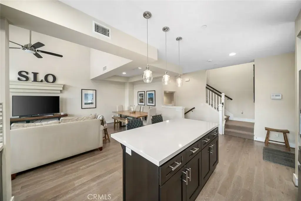 Welcome to 810 Coriander Lane in the desirable Avivo Townhomes, a former model home located just moments from Sinsheimer Park in San Luis Obispo. This beautifully appointed residence showcases exceptional design details, including soaring 11’+ ceilings, quartz countertops, newer stainless-steel appliances, and timeless shaker-style cabinetry. The primary suite features upgraded dual sinks and designer vanity lighting, creating a refined and elegant retreat.