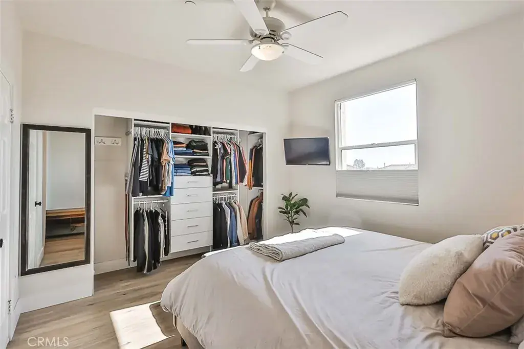 The home showcases all-new luxury vinyl large-plank flooring and oversized baseboards throughout, creating a clean and cohesive aesthetic. Both upstairs bedrooms feature ensuite bathrooms, adaptable California Closet systems, custom blackout shades, and views of the surrounding mountains. The third bedroom is located downstairs just off the kitchen and offers its own private balcony with views of Terrace Hill—ideal for guests, a home office, or a private retreat.