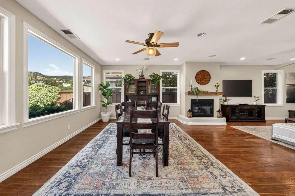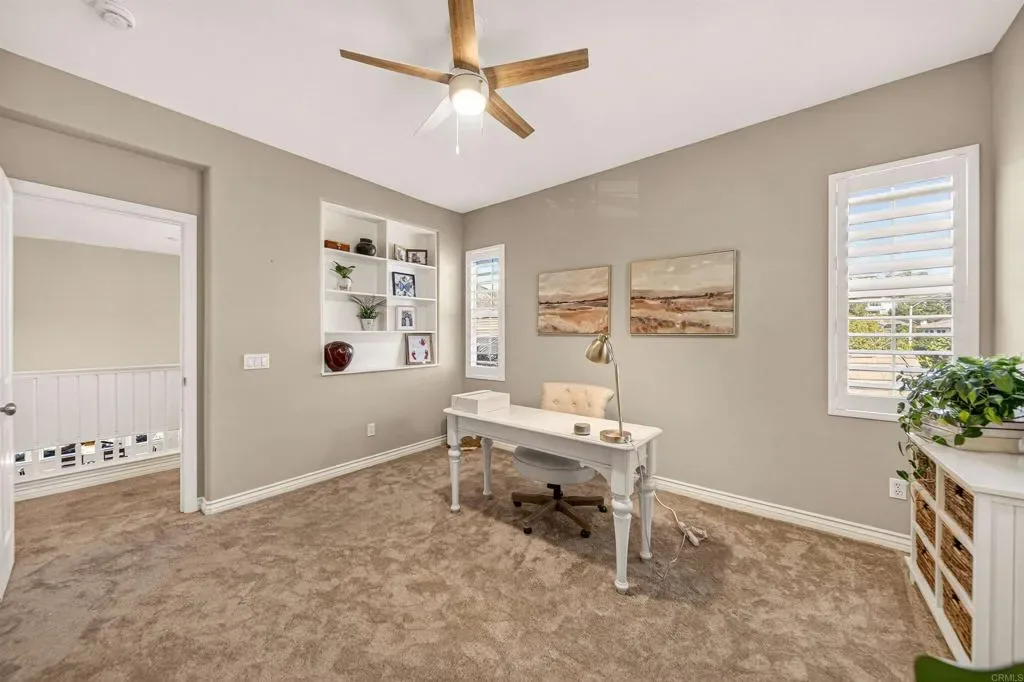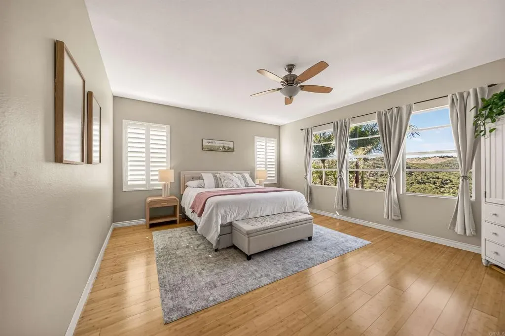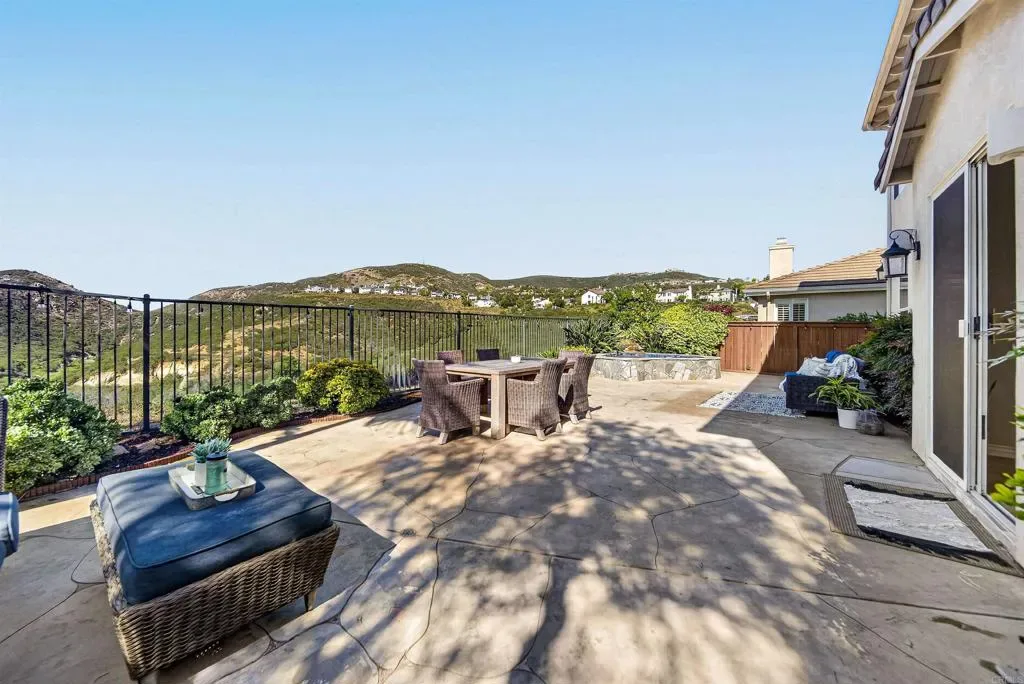 Set against panoramic canyon views and a lush preserved open space, this stunning Sagewood home in San Elijo Hills offers a setting that feels like your own private retreat. From the moment you step inside, the thoughtfully designed floor plan is enhanced by scenic views that carry throughout, offering 5 bedrooms plus an office, including a desirable entry level bedroom with a full bathroom. The open concept kitchen is both inviting and functional, featuring a walk in pantry, upgraded stainless steel appliances, and a seamless connection to the living and dining spaces, ideal for both everyday living and entertaining. Upstairs, the layout continues to impress with a dedicated office that can easily be converted into a 6th bedroom, a convenient study nook, and three spacious secondary bedrooms. The primary suite serves as a true retreat, offering beautiful views, added privacy, dual walk in closets, and an ensuite bathroom. Additional highlights include solar energy, a whole house fan, and a 3 car tandem garage with an electric vehicle charger. The backyard is designed to be enjoyed, featuring a private spa, multiple areas to entertain, play, or relax, and a peaceful setting overlooking canyons, wildlife, and the natural beauty of San Marcos Creek, complemented by a variety of mature citrus trees. Ideally positioned on a sought after cul-de-sac street just moments from the heart of San Elijo Hills close proximity to Town Square, parks, trails, and popular rated schools!