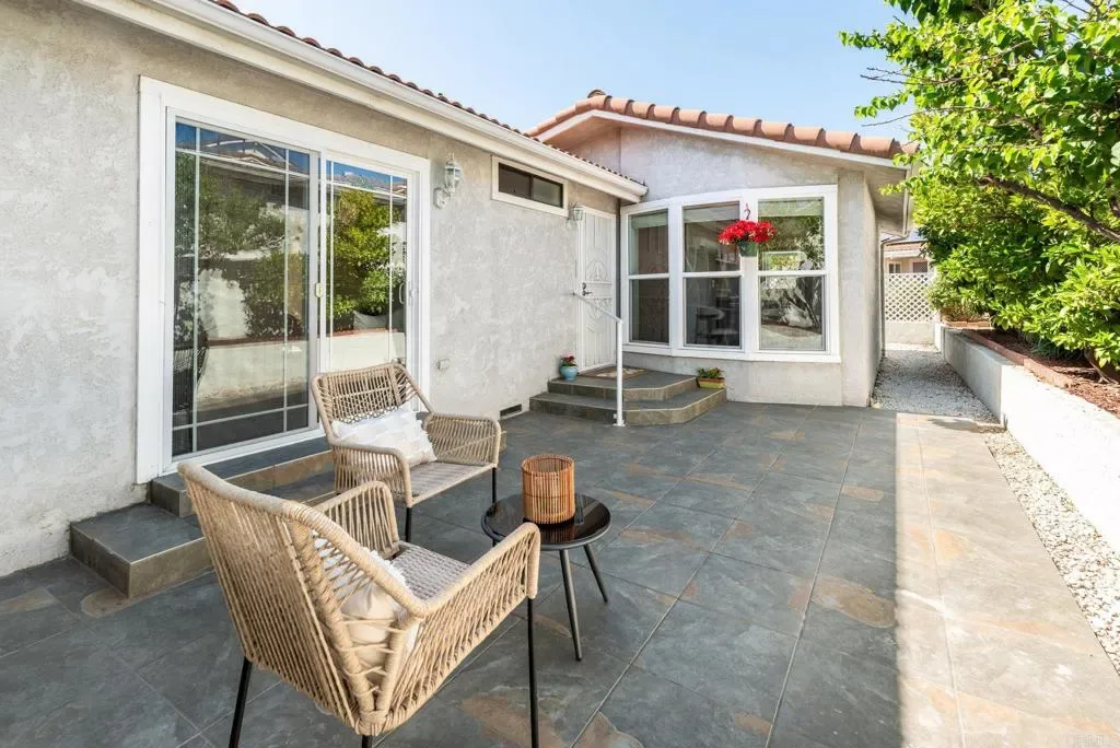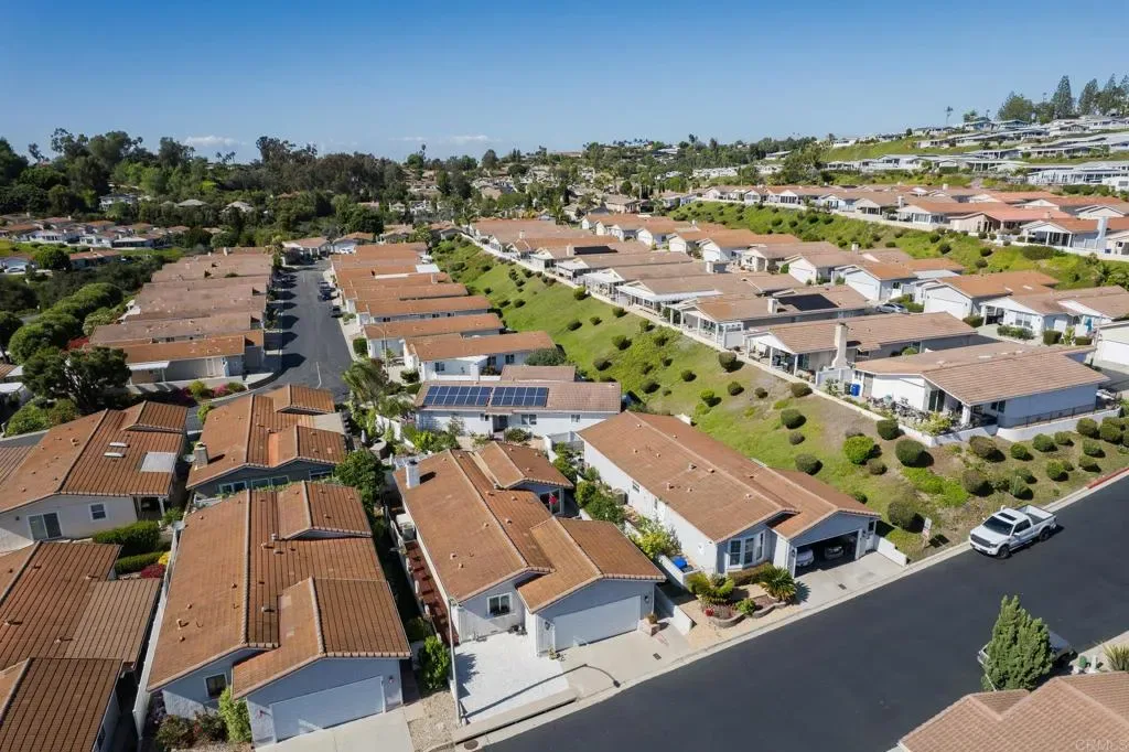 Located within the gated 55+ community of Las Brisas Pacificas, this land-owned home with a recorded 433A certification offers a rare blend of comfort, space, and everyday convenience in the heart of San Marcos. Spanning approximately 1,400 square feet, the open floor plan creates a bright and functional living space with seamless flow between the living, dining, and kitchen areas. The kitchen features a convenient breakfast bar along with a dedicated eat-in dining space highlighted by bay windows, bringing in natural light and creating a warm, inviting setting for everyday living. With two outdoor patios and low maintenance landscaping, the home provides multiple options to enjoy San Diego’s year-round sunshine in a peaceful, private setting. Recent updates throughout the home add a fresh and inviting feel, including all new LVP flooring in the main living areas and bathrooms and new paint in the kitchen dining nook. The home is equipped with an under-sink reverse osmosis water filtration system, newer washer and dryer, and a variety of mature fruit trees including oranges, lemons, apricots, and persimmons, creating a space that feels both comfortable and thoughtfully maintained. Las Brisas Pacificas is a gated community designed for low maintenance living, offering access to a pool, spa, clubhouse, and outdoor entertaining areas, along with well maintained grounds and shared spaces. Residents enjoy a quiet, well-kept environment while remaining just minutes from some of North County’s most popular destinations. Ideally located near Lake San Marcos, Restaurant Row, multiple golf courses, shopping at Bressi Ranch and nearby retail centers, Kaiser Permanente Medical Center, and just 7 miles from the coast, with easy access to the 78 freeway, this home offers the perfect balance of accessibility, recreation, and convenience for everyday living.