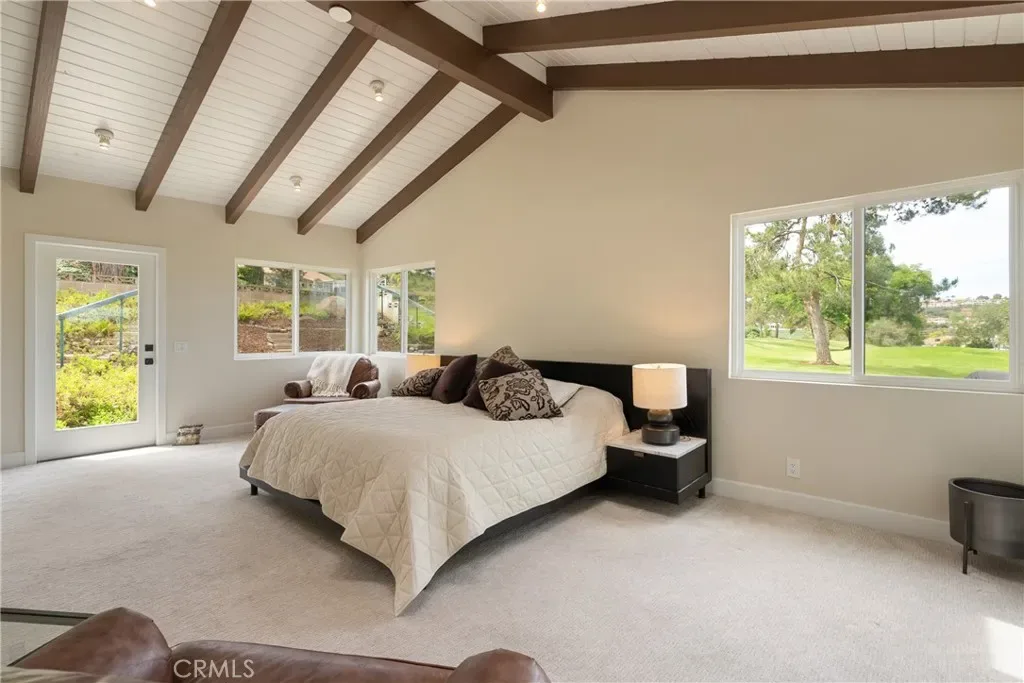 Set along the 5th fairway of the Championship Golf Course, this single-story residence sits on an expansive 11,000+ sq. ft. lot and has been thoughtfully elevated with refined, high-end finishes throughout. Mont Blanc quartzite countertops anchor a beautifully appointed kitchen featuring GE Profile appliances, custom cabinetry, and double ovens, complemented by designer Delta Brizo fixtures and Kohler sinks. Soaring exposed beams and abundant natural light create an airy, sophisticated ambiance, enhanced by 8MM custom luxury vinyl plank flooring. The residence offers dual primary suites, a cedar-lined closet, and a spa-inspired primary bathroom complete with a 32-inch soaking tub. A golf cart garage adds a layer of convenience, completing this polished golf course offering. Enjoy the lifestyle that comes with the Lake San Marcos community. The optional Lake & Lodge membership provides access to resort-style amenities without the hassle of maintenance, including two heated pools, tennis, pickleball, and paddle ball courts, a billiards room, and monthly paddleboarding or kayaking privileges. Residents also enjoy access to complimentary recreational equipment and exclusive discounts throughout the resort—ranging from dining and coffee to marina rentals and stays at the Lakehouse Hotel. Membership dues contribute to the upkeep of the lake, bridge, and surrounding amenities, ensuring a well-maintained and vibrant community.