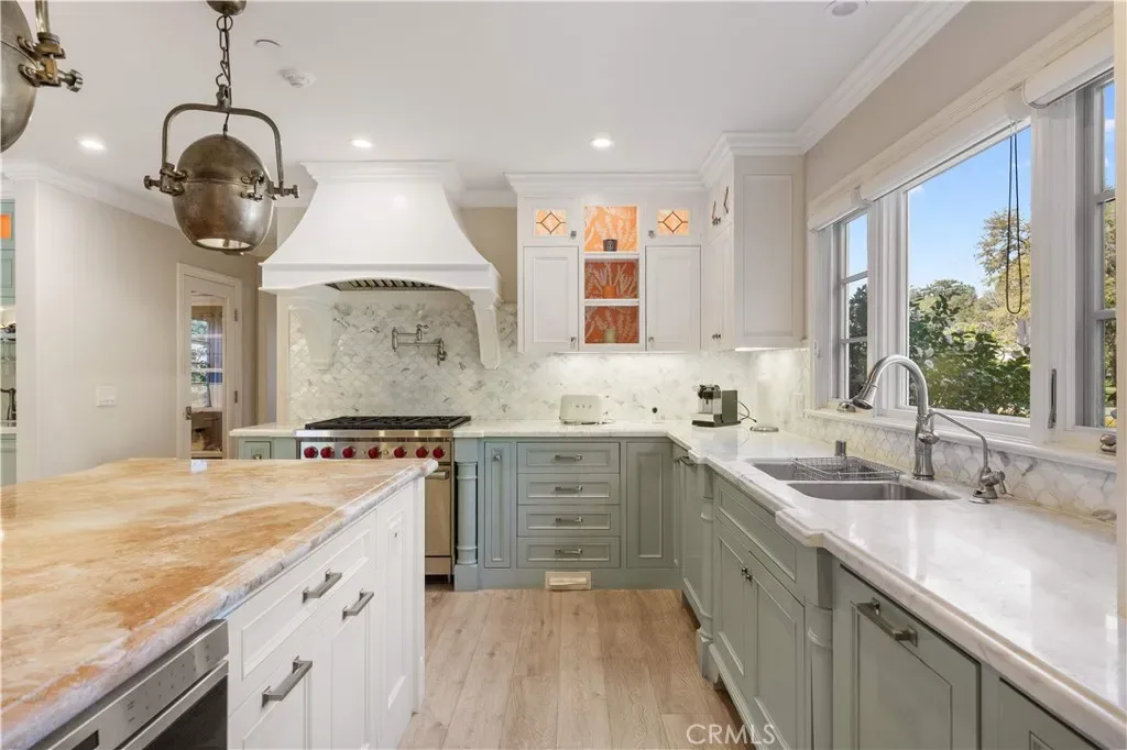 Elegant San Marino estate ideally located near the prestigious Lacy park, this beautifully rebuilt 2016 custom two-story ranch home offers 4 bedrooms, 4.5 bathrooms, and approximately 4,288 sq.ft. of refined living space on a generous 14,180 sq. ft. lot. Designed in timeless Cape Cod/South Hampton style, the home features a bright and open floor plan with spacious living, dining, and family rooms, perfect for both everyday living and entertaining. The gourmet kitchen showcases custom cabinetry and designer finishes, while elegant lighting, soft neutral tones, and a blend of natural wood and stone elements create a warm yet sophisticated ambiance throughout. Additional highlights include a private home theater, beautifully appointed bathrooms, and professionally landscaped grounds with expansive outdoor space. Located in a quiet and prestigious neighborhood close to top-rated schools and local amenities, this exceptional residence offers the perfect balance of luxury, comfort, and convenience.