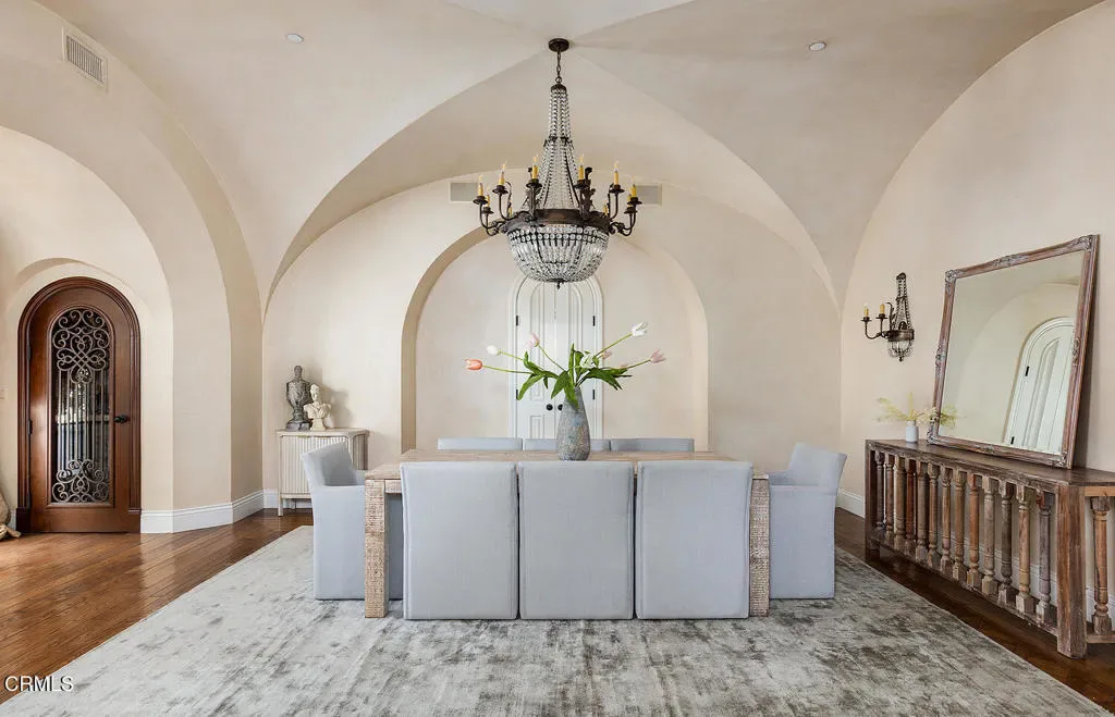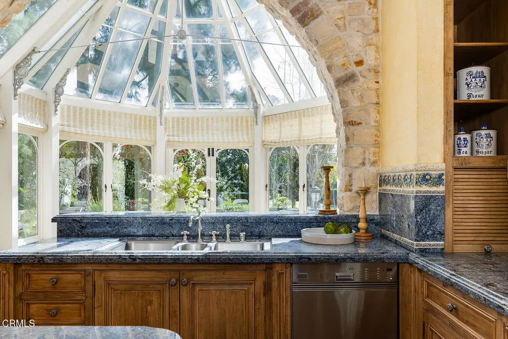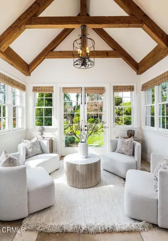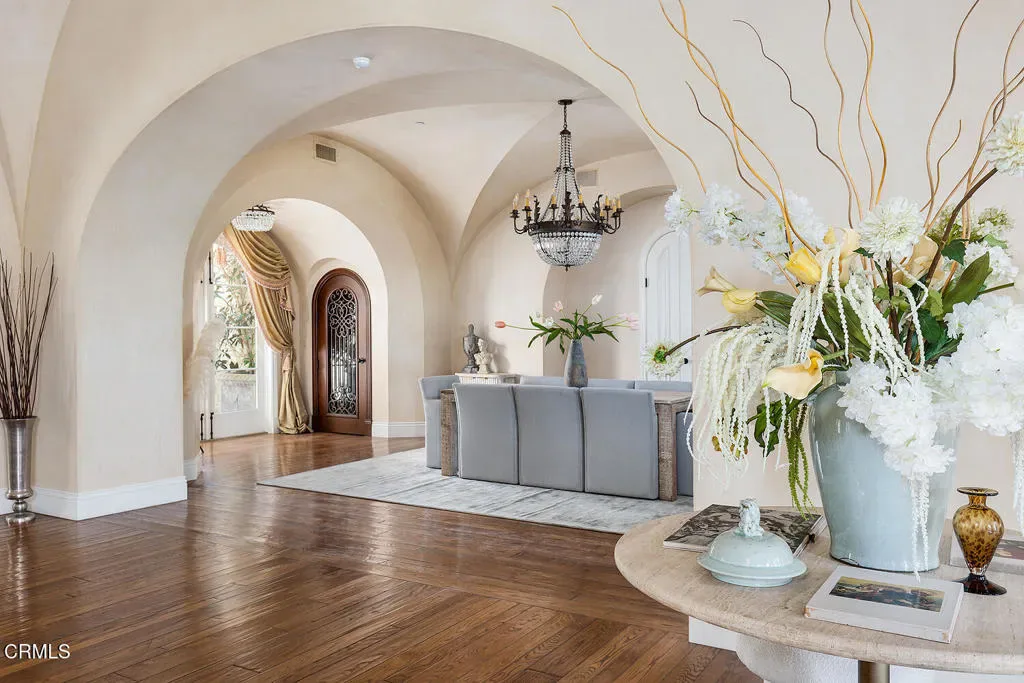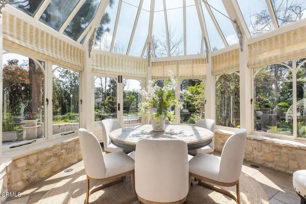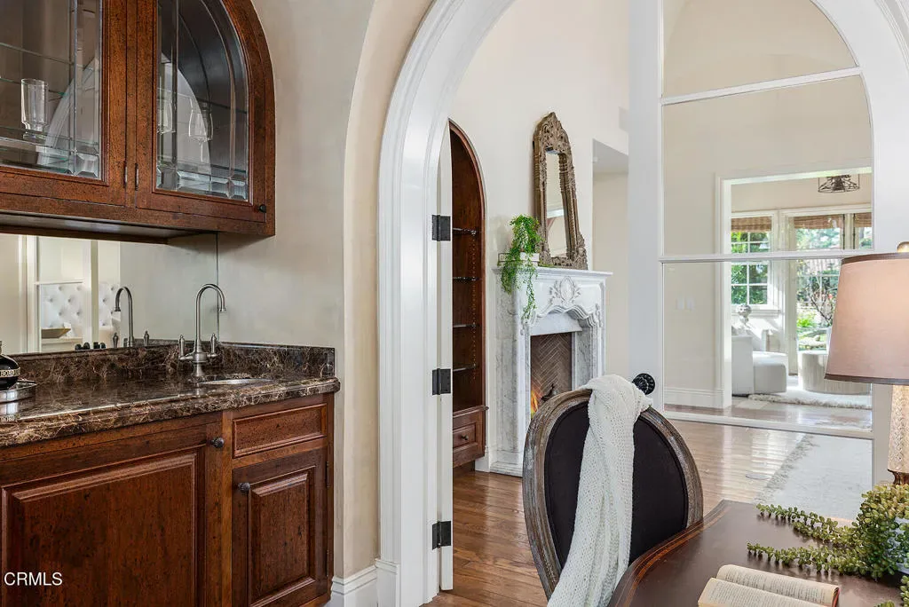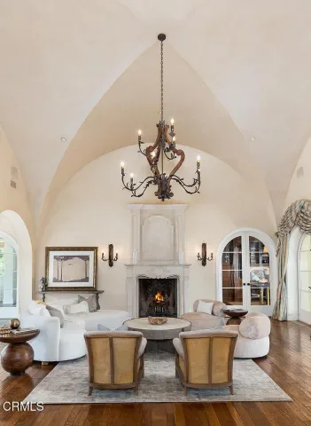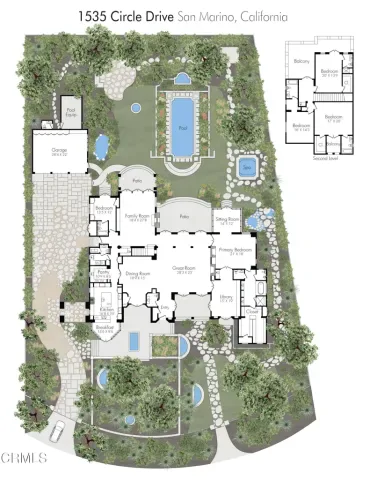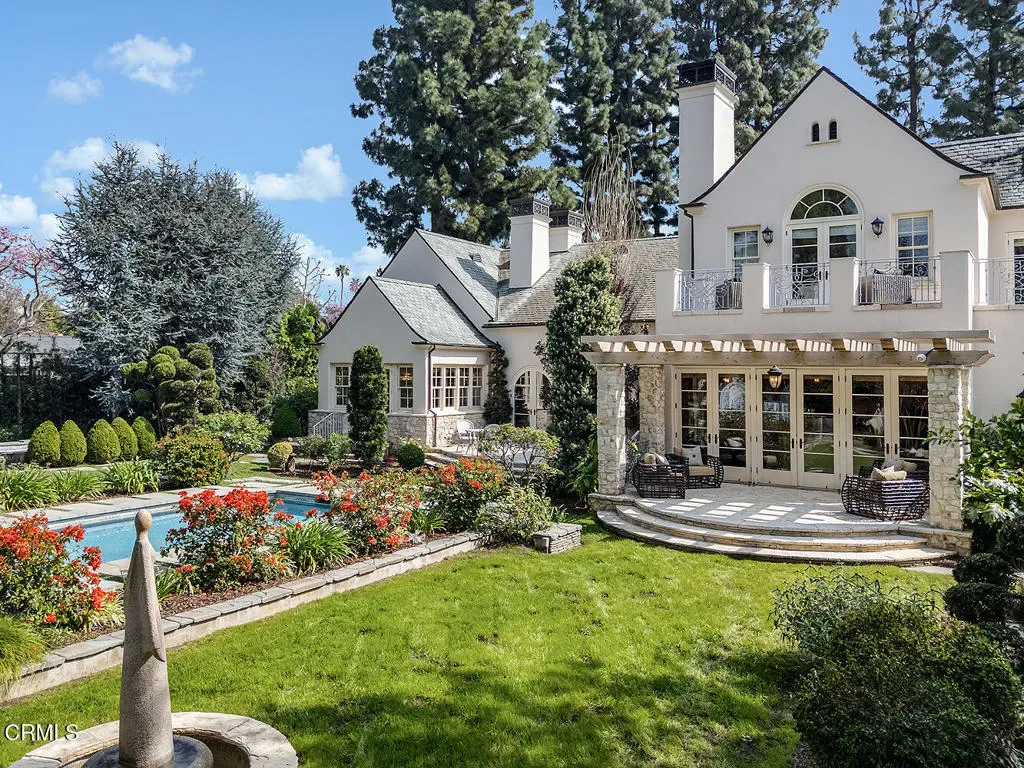 Beautifully sited on one of San Marino’s most treasured and prestigious streets, 1535 Circle Drive rises gracefully above Lacy Park as a rare and exceptional estate. Designed by noted architect Robert Sinclair and meticulously built from the ground up in 2002, skilled artisans created this timeless French Chateau-inspired residence. Cherished by the same family for over 27 years, this enchanting South-facing masterpiece is surrounded by magical gardens, bubbling fountains and towering trees, creating an ambiance of tranquility and romance. A meandering garden path leads to a formal foyer, and introduces a stunning living room with marble fireplace crowned by 16′ soaring ceilings, and a dining room with wine bar, ideal for grand entertaining and intimate celebrations alike. Numerous arched French doors offer captivating vistas of the glorious outdoors. The gourmet kitchen serves as the heart of the home, featuring a striking glass-turret breakfast room, generous center island and abundant cabinetry. A charming guest suite, an exquisite butler’s pantry, laundry room and two powder rooms, complete the west wing. The main-floor sumptuous primary suite is a true sanctuary, showcasing 20′ vaulted ceilings, marble fireplace, a sun-lit sitting room, expansive walk-in closet and a spa-like bathroom. An adjacent paneled library, adorned with custom bookshelves, a wet bar and French doors, makes for an ideal home office. A warm and inviting family room offers cozy family evenings, with French doors and a handsome fireplace. Gracing the upper level are three additional generous-sized bedroom suites, a covered terrace and a huge rear balcony with spectacular garden views, providing for restful, private family quarters. Tall arched French doors throughout the home capture the estate’s three-quarter-acre wondrous landscaped grounds that unfold into a tapestry of colorful gardens, scenic retreats and al fresco entertaining spaces. Bask in the sunshine and enjoy the magnificent pool and spa, scented rose garden, ponds, fountains and grassy lawn. Perfectly positioned near Lacy Park with ‘secret stairway’ access, The Huntington Botanical Gardens, fine dining, shopping, and within California’s top-ranked blue-ribbon school district, this outstanding estate is truly the ultimate paradise.