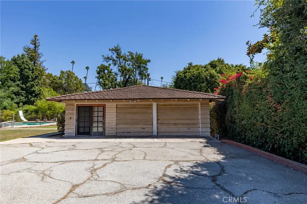 Discover an unparalleled opportunity to create your dream legacy on one of San Marino’s most coveted, tree-lined streets. This expansive, flat lot offers a rare 101-foot wide street frontage and a depth of 250 feet, providing a magnificent footprint for a grand-scale renovation or world-class new construction. While public records reflect a lot size of 24,764 SF, a professional survey indicates a staggering 25,775 SF of land—a massive 0.59-acre canvas. The property is fully gated with both front and rear driveway access, ensuring ultimate privacy and security. The main home is a charming 3-bedroom, 4-bathroom ranch boasting 2,369 SF of gracious living space. Step inside to a sun-drenched living room with a classic fireplace, leading to an upgraded primary suite and two additional well-appointed bedrooms. The family room offers a “walls of glass” feel with picturesque views of the lush, landscaped rear yard, mature trees, and a sparkling pool. A significant highlight is the detached structure located behind the garage. This approximately 400 SF bonus area—not included in the official title square footage—features a workshop, two versatile rooms, and a bathroom with a shower. Under grandfathered status, this space offers incredible utility as a private home office, guest quarters, or artist’s studio. Positioned in the heart of San Marino, you are just one block from the Crowell Public Library and the award-winning Valentine Elementary and Huntington Middle Schools. Enjoy easy access to the boutique shops and dining on Huntington Drive. Sold in its current condition—bring your architect and your vision to this rare Bedford Road gem.