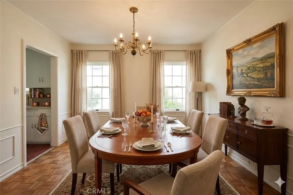 Upon entry, you are welcomed by a grand, sun-drenched living room that sets a tone of warmth and scale. The layout flows seamlessly into a formal dining room—perfectly positioned adjacent to the kitchen for effortless entertaining. Additional conveniences include a dedicated interior laundry area and an attached two-car garage. A secluded backyard sanctuary overflowing with layered, vibrant vegetation. Discover the classic San Marino lifestyle in a home that truly has it all.