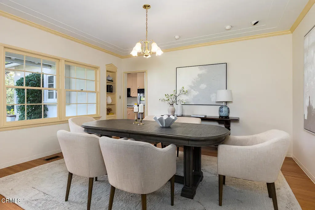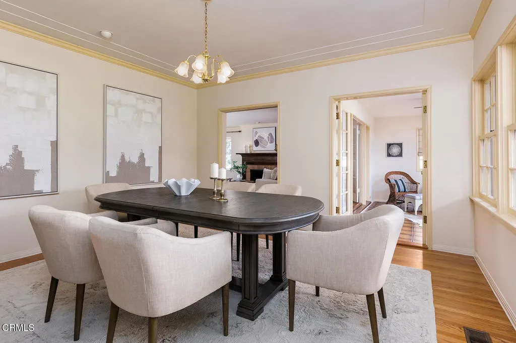 Set along one of San Marino’s most desirable tree-lined streets, this classic residence offers timeless architecture, gracious proportions, and exceptional flexibility in a premier neighborhood location.The main home features four bedrooms and two bathrooms, thoughtfully arranged within a layout that balances comfort and scale. A welcoming facade and mature landscaping introduce interiors defined by warmth and character. The light-filled living room, anchored by a fireplace and custom built-ins, flows effortlessly into a formal dining room detailed with crown molding, an ideal setting for both refined entertaining and everyday gatherings. An enclosed sun porch extends the living space and opens to the rear gardens, creating a seamless connection between indoors and out.The spacious primary suite offers dual walk-in closets, while the additional bedrooms provide versatility for family living, guests, or dedicated work-from-home space. Hardwood floors, custom built-ins, and well-proportioned rooms reflect enduring craftsmanship and thoughtful design.Beyond the brick patio and citrus trees, a detached studio with its own bath, kitchenette, fireplace, and generous storage enhances the property’s appeal. Whether used as guest quarters, a creative retreat, or a private executive office, this separate structure adds meaningful flexibility rarely found in this setting.The landscaped grounds provide privacy and tranquility, with multiple areas for outdoor dining and entertaining. A detached two-car garage with additional storage and a smart irrigation system serving both front and rear gardens add convenience and functionality.Moments from Lacy Park, the Huntington Library, and San Marino’s award-winning schools, this is a rare opportunity to own a residence that balances architectural character, flexible living, and an exceptional location.