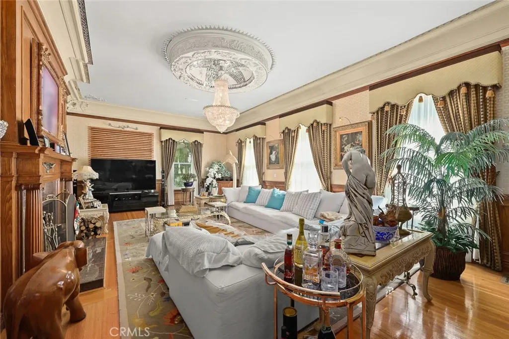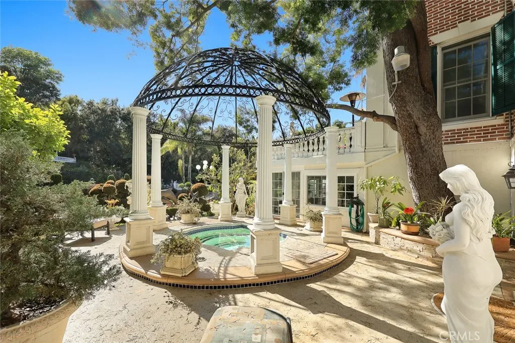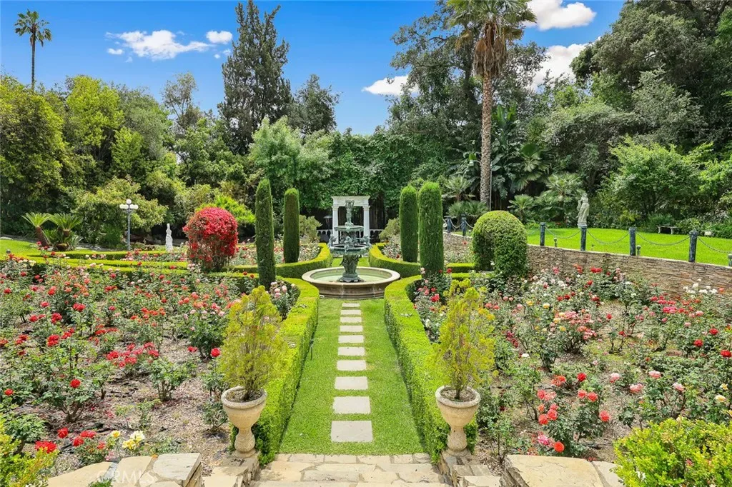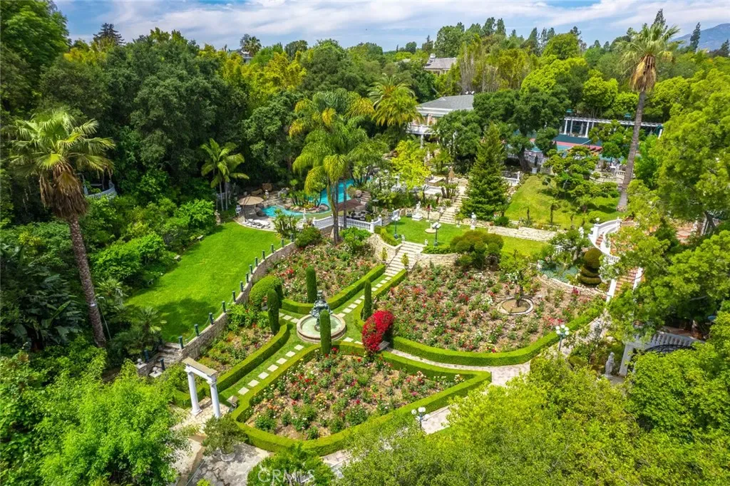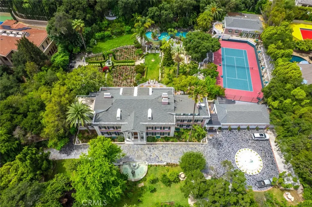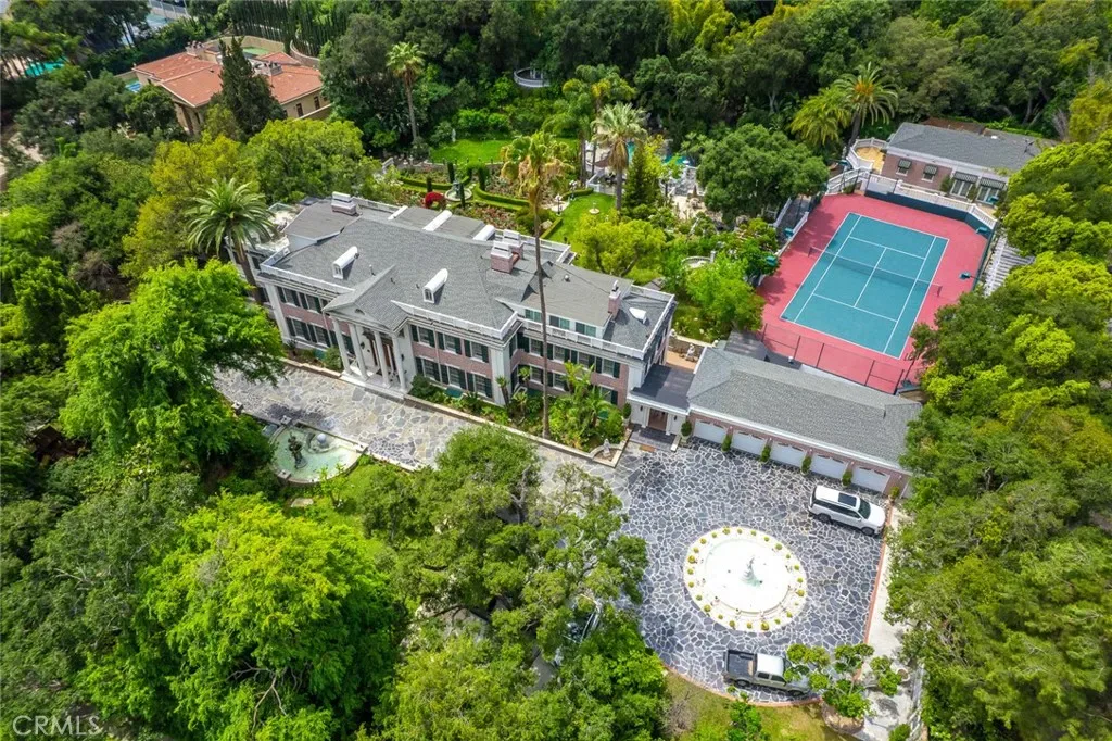 Located in the prestigious estate area of San Marino, this distinguished Georgian Colonial residence offers a rare blend of timeless architecture, refined luxury, and notable historical provenance. Originally constructed in 1918, with historical accounts attributing its origins to Henry E. Huntington, founder of the Huntington Library and Huntington Hospital, the property encompasses approximately 10,458 square feet and has been meticulously maintained, preserving its architectural integrity while incorporating modern amenities. Sited on an expansive 2.29-acre parcel, the property offers exceptional land value and usability, complemented by a long, private driveway with ample on-site parking capable of accommodating large gatherings with ease. Set behind wrought-iron gates and mature landscaping, the residence enjoys exceptional privacy and a strong sense of arrival. The grand interior features soaring 12-foot ceilings, elegant chandeliers, rich wood detailing, and graciously scaled formal spaces, with an elevator and sweeping staircases providing access to all levels. Designed for both formal entertaining and comfortable daily living, the residence offers a thoughtfully balanced floor plan. The primary suite serves as a private retreat with a jacuzzi tub, walk-in shower, expansive walk-in closet, and a separate sitting area, while six additional ensuite bedrooms provide ample comfort and privacy. Formal living areas include a grand dining room, stately library, conference room, and a private cinema, complemented by a fitness room, massage and barber room, multiple wet bars, and an extensive wine cellar. The grounds are designed to feel serene and impressive, featuring multiple balconies and terraces ideal for entertaining, along with resort-style amenities including a pool with waterfall and lighting, tennis court, cabanas, koi pond, and a Japanese-inspired tea house. Garden pathways, a gazebo, and secluded seating areas further enhance the landscaped grounds. Additional improvements include a six-car garage, maid’s quarters with two ensuite bedrooms, and a spacious two-story guest house. Fireplaces throughout the home and zoned central air conditioning provide year-round comfort. Located within the award-winning San Marino School District, this exceptional estate presents a rare opportunity to acquire a property of this scale, land value, privacy, and historical character in one of Southern California’s most desirable communities.