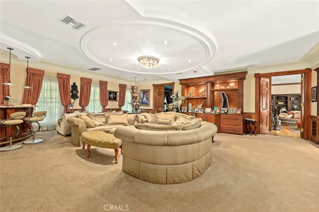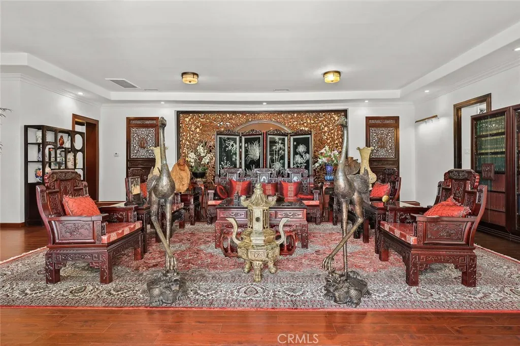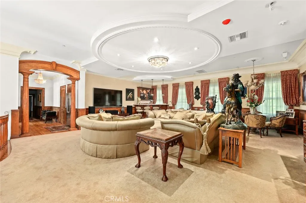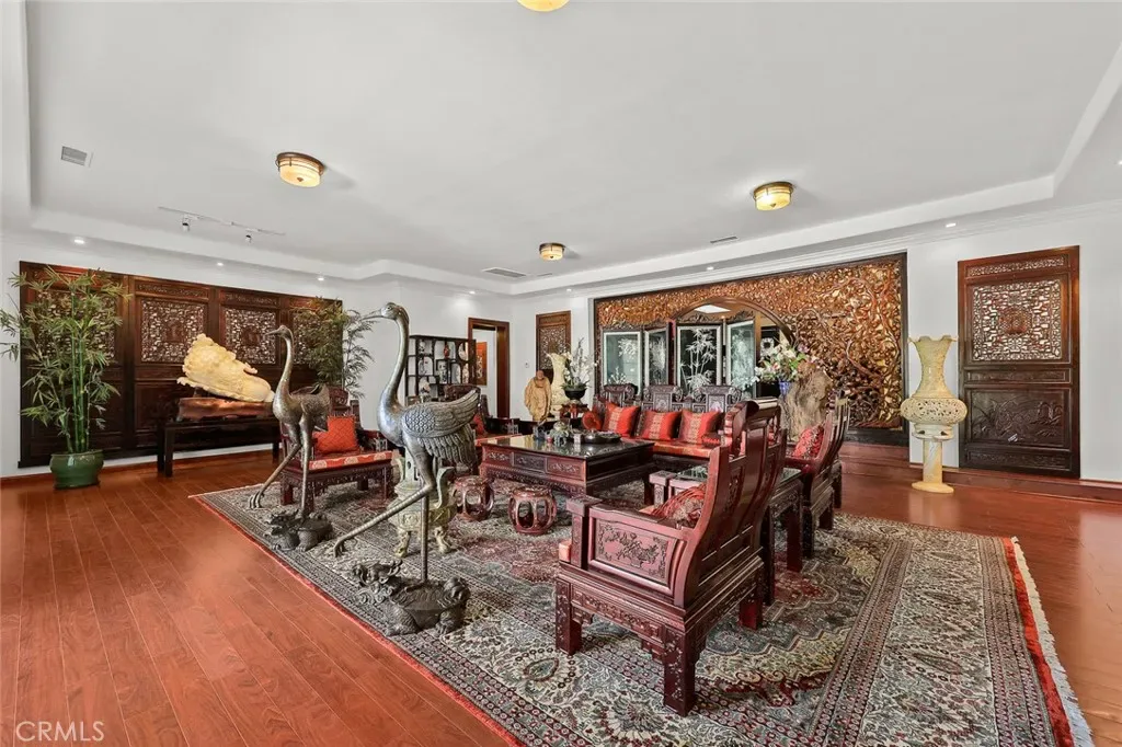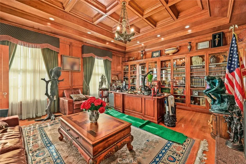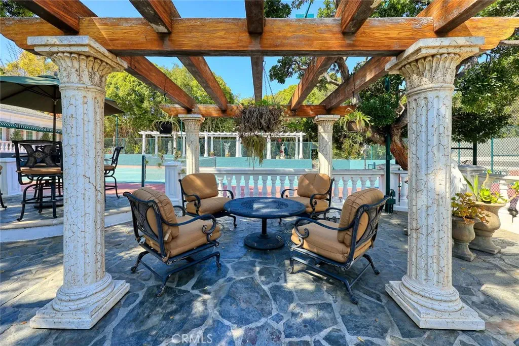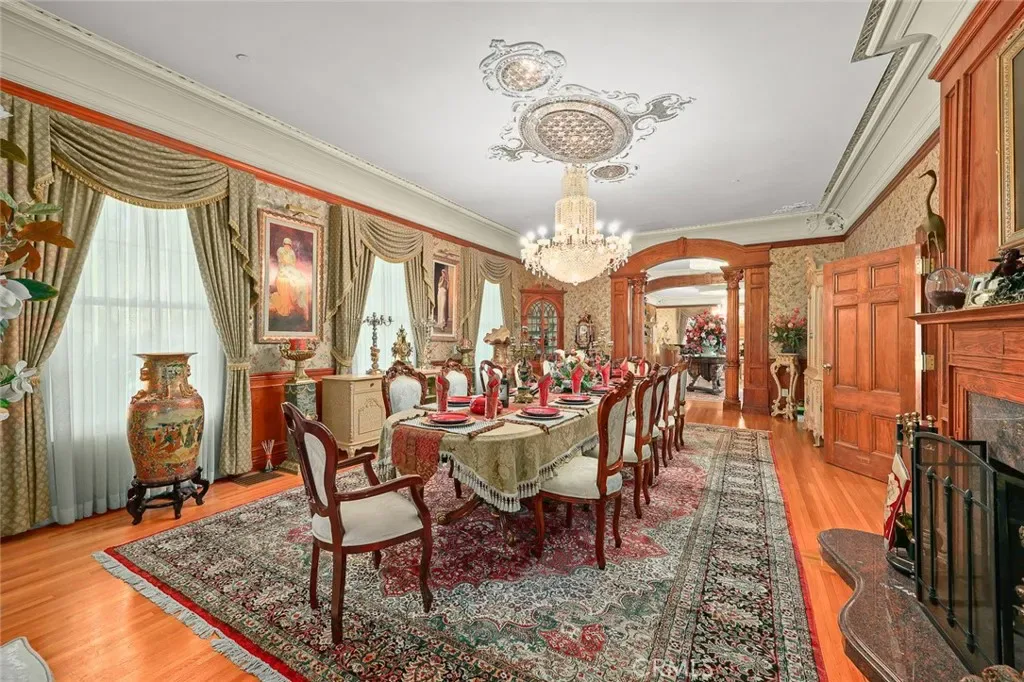 Located in the prestigious estate area of San Marino, this distinguished Georgian Colonial residence offers a rare blend of timeless architecture, refined luxury, and notable historical provenance. Originally constructed in 1918, with historical accounts attributing its origins to Henry E. Huntington, founder of the Huntington Library and Huntington Hospital, the property encompasses approximately 10,458 square feet and has been meticulously maintained, preserving its architectural integrity while incorporating modern amenities. Sited on an expansive 2.29-acre parcel, the property offers exceptional land value and usability, complemented by a long, private driveway with ample on-site parking capable of accommodating large gatherings with ease. Set behind wrought-iron gates and mature landscaping, the residence enjoys exceptional privacy and a strong sense of arrival. The grand interior features soaring 12-foot ceilings, elegant chandeliers, rich wood detailing, and graciously scaled formal spaces, with an elevator and sweeping staircases providing access to all levels. Designed for both formal entertaining and comfortable daily living, the residence offers a thoughtfully balanced floor plan. The primary suite serves as a private retreat with a jacuzzi tub, walk-in shower, expansive walk-in closet, and a separate sitting area, while six additional ensuite bedrooms provide ample comfort and privacy. Formal living areas include a grand dining room, stately library, conference room, and a private cinema, complemented by a fitness room, massage and barber room, multiple wet bars, and an extensive wine cellar. The grounds are designed to feel serene and impressive, featuring multiple balconies and terraces ideal for entertaining, along with resort-style amenities including a pool with waterfall and lighting, tennis court, cabanas, koi pond, and a Japanese-inspired tea house. Garden pathways, a gazebo, and secluded seating areas further enhance the landscaped grounds. Additional improvements include a six-car garage, maid’s quarters with two ensuite bedrooms, and a spacious two-story guest house. Fireplaces throughout the home and zoned central air conditioning provide year-round comfort. Located within the award-winning San Marino School District, this exceptional estate presents a rare opportunity to acquire a property of this scale, land value, privacy, and historical character in one of Southern California’s most desirable communities.