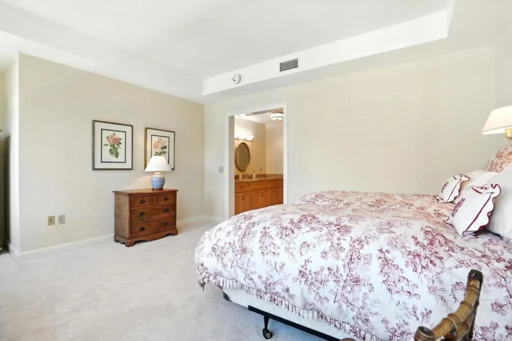 Experience upscale living in this beautifully appointed luxury condominium, ideally located within walking distance to San Mateos finest shopping, dining, and entertainment. Now offered at a newly reduced price, this home presents an outstanding opportunity and one of the best values per square foot. Residents enjoy exceptional amenities including chef-prepared meals, weekly housekeeping, a library, game room, indoor heated pool and Jacuzzi, plus a rooftop garden with panoramic views, walking track, and putting green. Inside, expansive windows flood the home with natural light. The kitchen features granite countertops, abundant cabinetry, and generous counter space. The primary bathroom offers tile floors, a marble dual-sink vanity, and walk-in shower, while the second en-suite includes a soaking tub and marble countertop. Brand-new carpet in the bedrooms and family room complements hardwood floors throughout. Elegant millwork, built-in cabinetry, and a custom bookcase add refined character. One of the largest balconies in the building provides an ideal space for outdoor dining and entertaining.