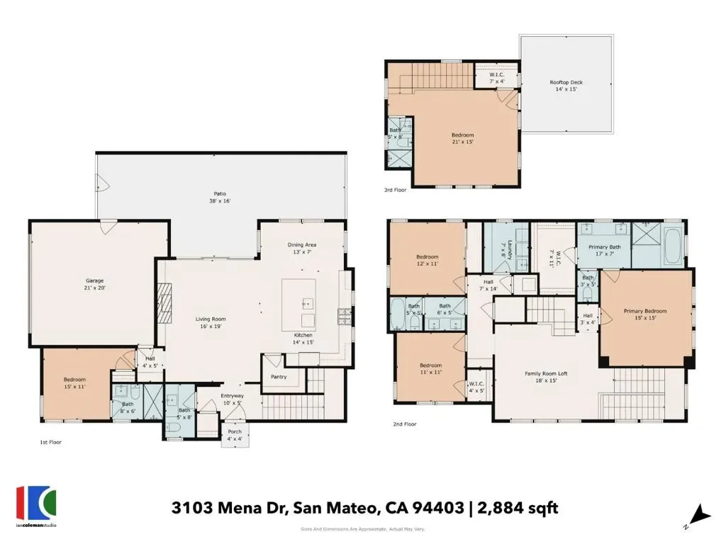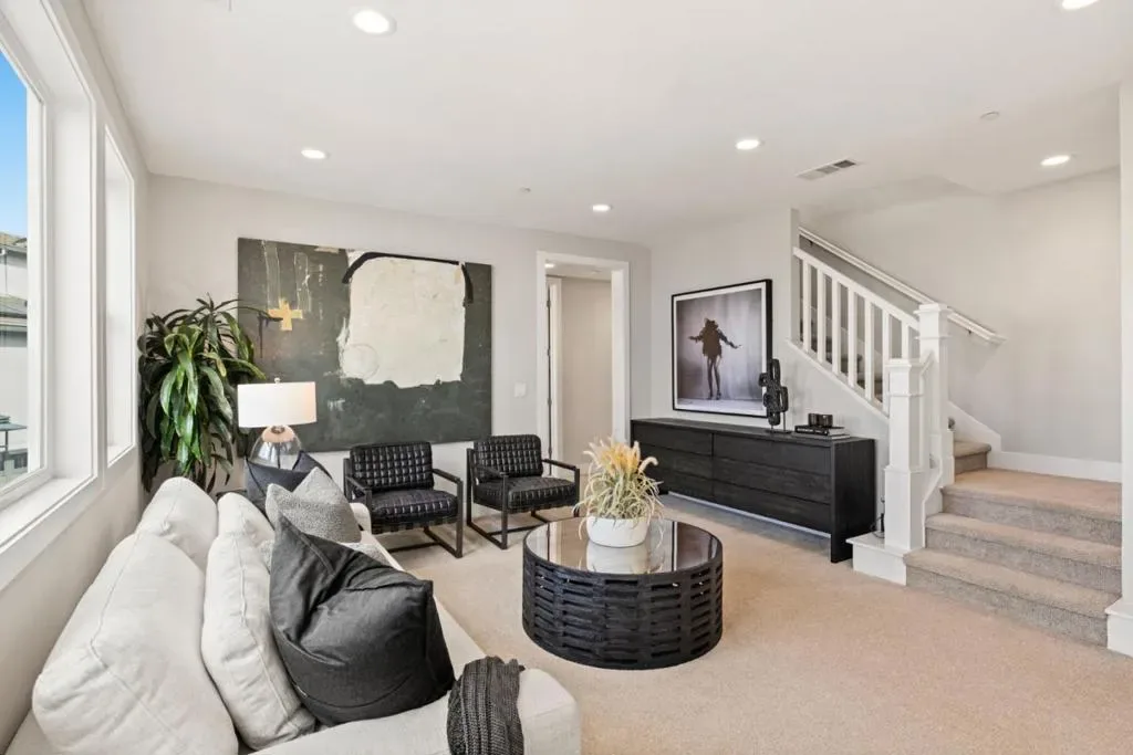 Built in 2018, this single family homes offers both a private yard and a roof deck, making it a haven that exceeds expectations! The main level features an open-concept layout with a state-of-the-art kitchen with large pantry that flows seamlessly into the living and dining areas and opens directly to the yardideal for indoor/outdoor living. A full bedroom suite on this level adds convenience and versatility. Additional coat closet and half bath ideal for convenience and entertaining. Upstairs, the second floor includes a luxurious primary suite, a spacious family room, and two additional bedrooms that share a well-appointed bath. The primary suite enjoys expansive windows, walk in closet and en-suite bath with dual sink vanity, water room with expansive shower and soaking tub and water closet. The top floor is a true standout: a flexible room with full bath opening to a large, sun-filled patio, perfect for a home gym, office, entertaining lounge, or private guest suite. Exceptional location near parks, dining, Caltrain, and major commute routes. Feed to top rated George Hall Elementary.