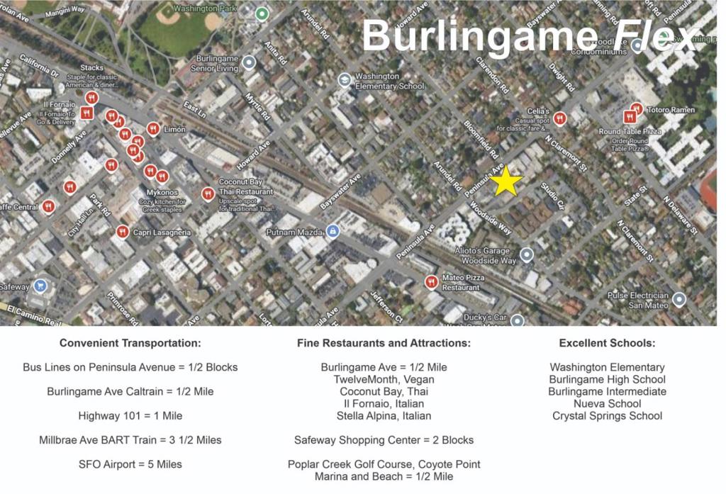 Office building permissible for preschool, school, medical, lab, wide variety of purposes including 3 residential, new housing dev. Use as triplex requires adding showers, other improvements. For Lease or Sale. Reception, 9 Private Offices, 1 Large Conference Room, 3 x 2 Restrooms, Break Room, Outdoor Patio 1/2 mile, Walking Distance to Burlingame Caltrain. Zoning Summary: Administrative, executive, and professional offices, provided that the professional offices are limited to those professions listed in Section 5.24.160: accountant, appraiser, architect, assayer, attorney, auditor, bacteriologist, certified public accountant, chemist or laboratory specialist or operator, chiropodist, chiropractor, civil engineer, dental laboratory specialist or operator, dentist, electrical engineer, geologist, hydraulic engineer, medical laboratory specialist or operator, oculist, optician, optometrist, osteopath, physician, structural engineer, surgeon, surveyor, and veterinarian (check for kennel). Retail of goods and services, Restaurants, Health and recreation, Schools, day care, Financial, business offices, laboratories. Warehousing, storage, and distribution. Residential, R3 multi-family. Special Uses: clubs, hotels, religious, kennel, community center, schools.