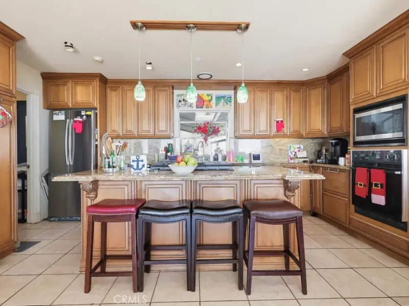 Exciting opportunity to own in the highly desirable Palos Verdes Shores! Enjoy panoramic ocean, Catalina Island & hillside views from this amazing turnkey 3-bedroom, 2-bathroom 2040sf home residing on a large lot & a quiet street. Back deck spans the length of the home & offers multiple ocean view seating areas including a covered Gazebo & a covered lounge area. Living room, dining room, kitchen, foyer & 2 bedrooms also boast stunning ocean, Catalina Island & sunset views! Open concept kitchen features Granite countertops, wood cabinets, island, 4-seat breakfast bar, gas stove, microwave, oven, dual sinks, stainless steel refrigerator, dishwasher, recessed lights & easy-care tile floors. Light & bright open concept great room features fantastic living room & dining area boasting high ceilings, sliding glass doors, French doors, recessed lights, built-in cabinets, easy care floors & stunning ocean, Catalina Island & sunset views. First primary bedroom offers amazing ocean, Catalina & sunset views while lying in bed, wood floors, walk-in closet & bathroom ensuite equipped w/tile floors, walk-in shower, dual sinks, linen closet & extra storage cabinets. Second bedroom currently being used as a media room & features crown molding, wood floors & glass doors leading to the deck that captures stunning ocean, Catalina Island & sunset views. Guest bathroom features single sink vanity, walk-in shower & tile floors. Third bedroom can be used as a second primary bedroom, home gym, or office, & offers wood floors, mirrored closet doors & attached bathroom w/walk-in shower. Laundry room inside home features washer & dryer plus cabinetry for extra storage. 3 storage sheds on this large lot makes this the perfect place to downsize to! Exterior offers river rock masonry siding, side-by-side 4 car covered parking, multiple gardening areas, gated dog run & areas for pets to run freely, low maintenance front yard & vinyl fencing. NO Property Taxes & Lower than Average Space Fee! Palos Verdes Shores is a gated community w/hiking, private Golf Course, heated pool, hot tub, carwash, sauna, lit tennis & pickleball courts, RV & boat parking, 2 dog parks, gardens, rec. center, salon & spa, gym, movie theater, billiards, 2 lounges, banquet hall, restaurant-like kitchen, library, meeting room, security, management & maintenance. Community activities include water aerobics, dance, stretch, yoga, tai chi & hula + more. Located near restaurants, malls, stores, banks, medical & freeways.