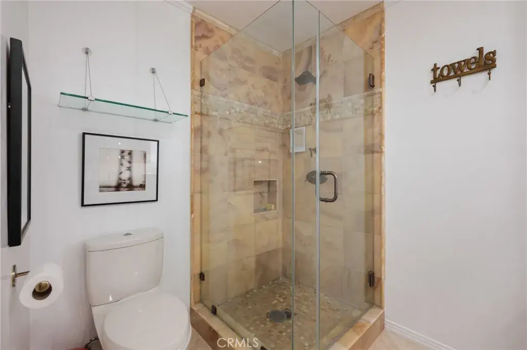 The primary retreat offers a peaceful escape with an ensuite bathroom featuring a relaxing jetted tub. Additional conveniences include an in-unit washer/dryer and a gated garage with two tandem parking spaces equipped with a private EV charger. Whether watching the ships glide through the harbor or enjoying the coastal breeze, this home offers a unique vantage point of the port’s beauty.
