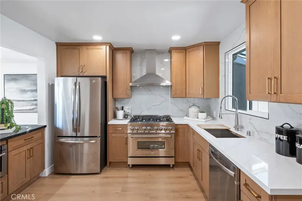 Located in the highly sought after Palisades neighborhood of San Pedro, this fully remodeled 4 bedroom, 3 full bathroom home offers stunning ocean and Catalina Island views with a layout designed for comfortable living. Perched high above the street level, the entry is lined with stylish custom wood panels and opens to the dining room with fireplace and gourmet kitchen. The kitchen features a beautiful wide open island, new cabinetry, porcelain backsplash, stainless steel appliances including ZLINE stove/microwave, wine cooler, bar area, and other custom touches! The main level also features 2 bedrooms and a fully remodeled bath. Step out to the spacious backyard, which was fully recreated with new concrete, grass, landscaping, and a gazebo perfect for entertaining. The upper level is where the views really hit! Large living room with multiple windows facing the ocean and a balcony with additional outdoor space. This level also features a designated laundry room, remodeled guest bathroom and a primary ensuite that is straight out a designer magazine! Considerable closet space along with additional walk in closet, full bath and views of Catalina from the primary bedroom. Some of the many other features include new white oak solid-core doors with coordinating black hardware, new timberline charcoal cool roof, custom closets, vinyl flooring throughout, 50 gallon water heater, recessed and custom lighting, fresh exterior/interior paint, 240v electrical panel, etc. The oversized 3 car garage is equipped for EV charging and provides plenty of parking, storage, and basement area that can be used for additional storage space. Additional driveway space next to garage provides opportunity for potential boat, toy, and vehicle parking. Bright, open living spaces create an ideal environment for both everyday living and family gatherings, while the home’s elevated setting delivers cool ocean breezes and unforgettable sunset views. The flexible floor plan allows room for growing families, guests, or a home office. Located just one block from historic Paseo Del Mar and a short stroll to the neighborhood Corner Store, Pt. Fermin Lighthouse, nature preserve, walking trails, and the iconic Korean Bell. Pack your bags and move right in!