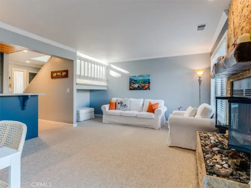 This peaceful coastal retreat offers the lifestyle you’ve been waiting for, where mornings begin with sunrises over rolling hills from your private back deck and evenings end with glowing ocean sunsets viewed from the spacious primary bedroom suite. Located just a short walk from the beach, the home enjoys a rare natural setting, with the Hearst Ranch—protected by a permanent conservation easement—as its eastern neighbor and the occasional zebra wandering by. The three-bedroom home features a generous primary suite with high ceilings, while the living and dining rooms are anchored by a beautiful stone fireplace with a natural wood mantel, creating a warm and inviting space for reading, relaxing, or entertaining, all enhanced by soaring ceilings. Move-in ready and meticulously maintained, the home is sparkling clean and finished in a soothing coastal color palette throughout, with crown molding, Berber carpet, an updated kitchen, dual-pane windows, and a new furnace. Recent upgrades include new up-down shades in the primary suite, new blackout up-down shades in the eastern bedrooms, a new Speed Queen washer and gas dryer, and a garage with newly built shelving. Blooming roses grace both the front and back gardens, complemented by drip irrigation in the front garden. The entire complex has been freshly painted and features attractive pavers, upgraded garage lighting, and well-maintained landscaping, all supported by low HOA fees and a well-functioning association. Whether as a holiday getaway, family home, or retirement retreat, this property offers a truly desirable location and an exceptional coastal living experience.
