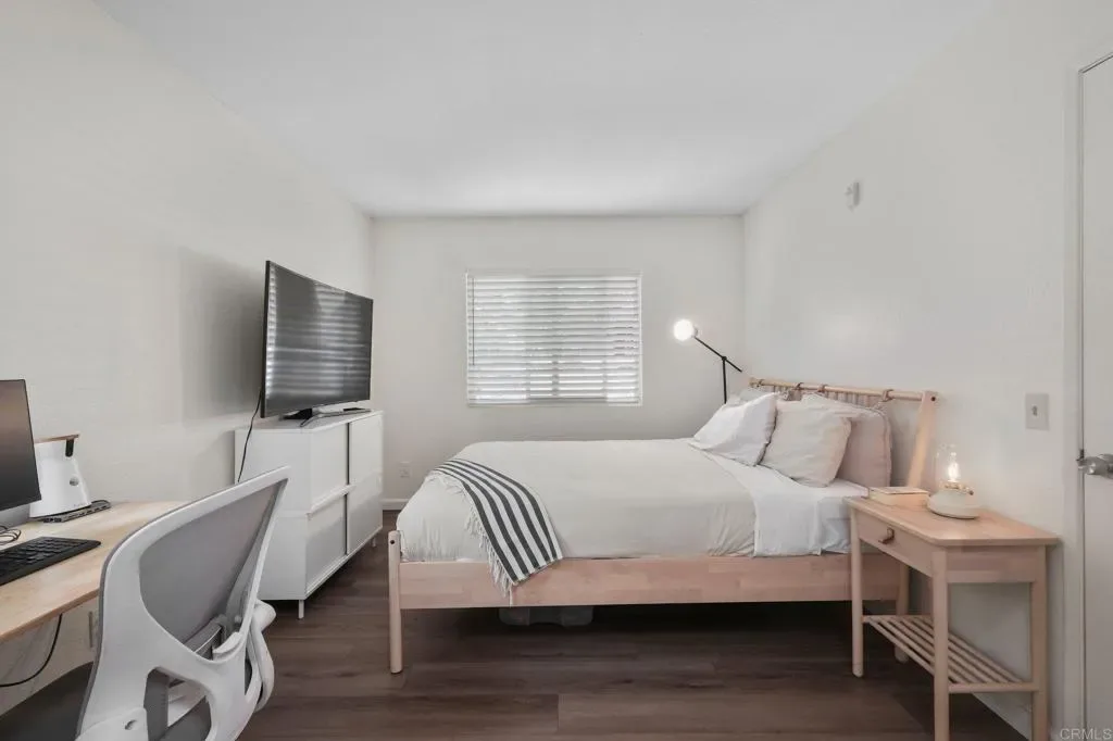 Welcome to this elegantly upgraded one-bedroom, one-bathroom corner unit, located on the upper floor for enhanced privacy. The residence features modern stainless-steel appliances, two community swimming pools, and secure gated entry. For added convenience, one car carport with storage unit and in-unit washer/dryer. With easy access to nearby freeways and the trolley, this home perfectly combines comfort and accessibility.
