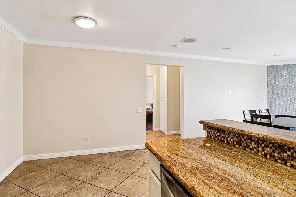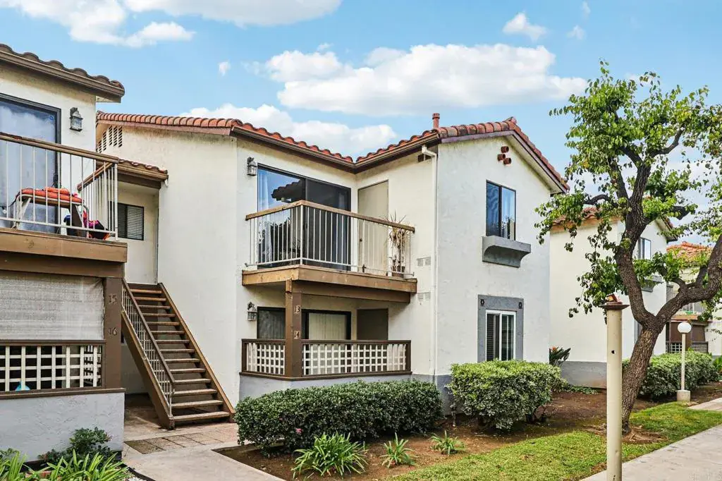 Beautifully upgraded upper level condo in the Sunset Village gated community with 2 generously sized bedrooms, 2 full baths, and 2 parking spaces. Open layout featuring crown molding, recessed lighting, custom tile flooring, kitchen with granite and full splash, stainless steel appliances, breakfast nook, large living room leading to your private balcony, full hallway bath with granite counter-tops and vessel sink, primary bedroom with wood laminate flooring, private bathroom, and walk-in closet. HOA covers water, trash, and more! Conveniently located close to freeways, shops, and the border. Low-down-payment programs may be available. This is a must see!