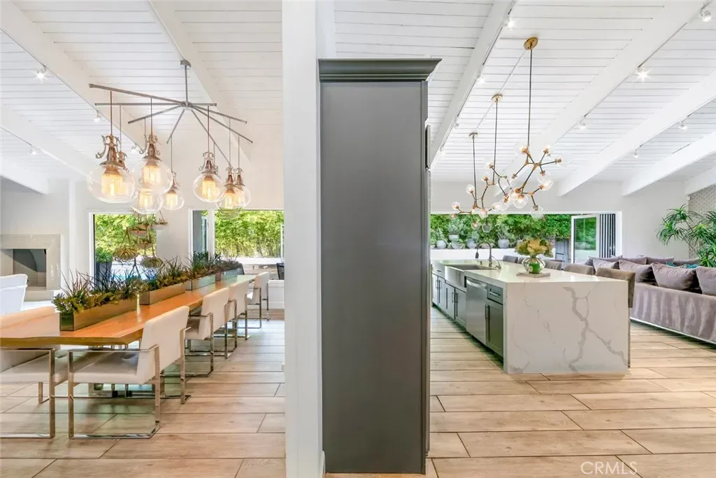 The open concept floor plan is anchored by a recently updated chef’s kitchen featuring state of the art appliances, sleek custom cabinetry, and premium finishes, creating the perfect space for both everyday living and entertaining. Natural light fills the home, highlighting the clean lines, modern flooring, and refined architectural details.