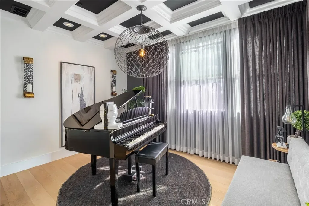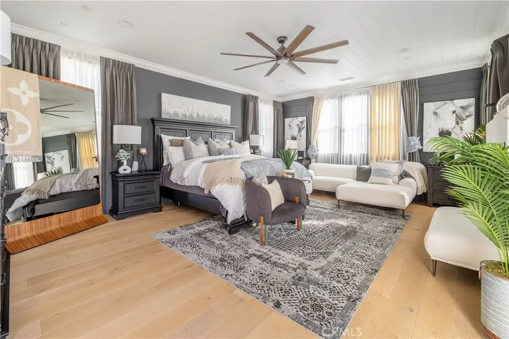 Featuring 4 bedrooms plus a main floor office (or optional 5th bedroom) and 4 full bathrooms, this home blends modern elegance with everyday comfort. Rich hardwood flooring, designer chandeliers, and custom wainscoting create warmth and sophistication throughout.