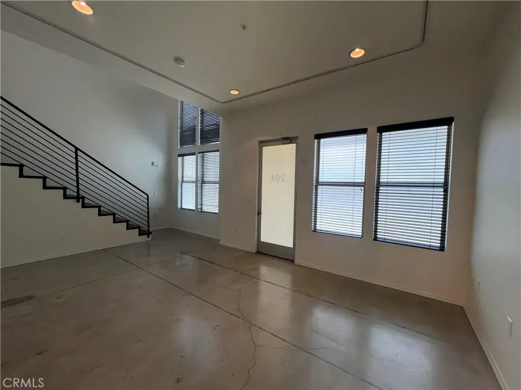 Work And Living Space Loft 1 Bedroom 1.5 Bath Attached Townhouse in The Downtown Santa Ana Artist Village, Large Office Space On Ground Floor, Vaulted Ceilings, Upper Open Space Great Room, Kitchen With Refrigerator, Stove, Dishwasher, Microwave, Island, Separate Dining, Living Room With Balcony, Built-In Book Case, 2 Inch Blinds, Concrete Floorings Throughout, Stackable Washer And Dryer Included, A/C, Double Attached Garage With Openers, Walking Distance To Amazing Restaurants, Museums, Theatres, Shopping And The Farmers Market, Court Houses, And Night Life Entertainment.