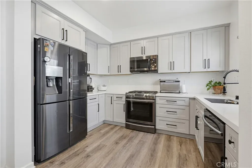 Spacious and well-appointed multi-level condo for lease in the highly sought-after City Place community of Santa Ana. Offering 4 bedrooms, 2.5 bathrooms, and 2,185 sqft, this home features an attached 2-car garage and a versatile, thoughtfully designed layout. The entry level welcomes you with a formal living room showcasing soaring ceilings, a cozy gas fireplace, and plantation shutters. Upstairs, the second level boasts bright and open living and dining areas with stylish vinyl flooring and plantation shutters, seamlessly connecting to a beautifully renovated kitchen with shaker cabinetry, quartz countertops, stainless steel appliances, and a reverse osmosis water filtration system. A convenient half bathroom completes this level. The third floor offers three generously sized bedrooms, including one with a private balcony and another with a walk-in closet, along with a full bathroom and a laundry room equipped with washer and dryer. The top level is dedicated to the expansive primary suite, featuring vinyl flooring, a large walk-in closet, and a spacious en-suite bathroom with dual sink vanity, soaking tub, and walk-in shower. Enjoy unbeatable convenience with a prime location just steps from Mother’s Market, restaurants, and local shops, as well as close proximity to MainPlace Mall, Santiago Park, CHOC, St. Joseph Hospital, and Old Towne Orange. Easy access to the 5, 55, 57, and 22 freeways makes commuting a breeze. Water and trash are included in the rent. Refrigerator, washer, dryer, dishwasher, and microwave are also included. Located within the Orange Unified School District.