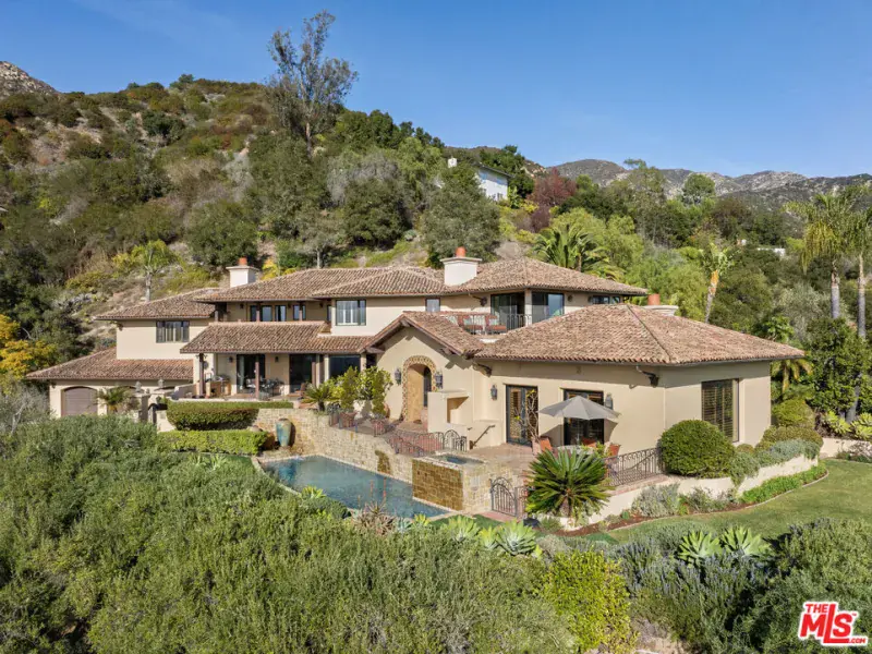 Defined by its vast ocean, island, & harbor views stretching over the Pacific, this estate offers an ever-changing panorama of tranquil horizons. The ocean’s beauty fills every room with natural light & serenity. Grand arched entryway, intricate wrought iron door, soaring ceilings with exposed beams, & stone floors evoke the charm of a European villa. A magnificent stone fireplace stands as the core of the grand living room. This space is large enough for several seating areas all flowing out to the pool terrace and /or gardens. The Formal Dining Room opens to both the Living Room and has a private terrace complete with a fountain and lush landscaping. Expansive Gourmet Kitchen with View Breakfast room. The Kitchen features Stainless steel appliances as well as a large island with seating Commodious storage in the adjacent walk-in pantry and separate butler’s pantry. Family Room flows from the Kitchen space to a covered entertaining terrace complete with barbeque. The Family Room has a custom fireplace as well as a full wet bar with bar seating and an exceptionally large temperature controlled Wine Cellar. A Library features a fireplace, built-ins as well as a full bathroom. Library/office has direct access to the gardens and terraces. The Grand Staircase leads to the Primary suite as well as 4 additional suites with several opening out to view terraces. The gracious Primary Suite is in its own wing and offers a sitting area w/fireplace, beamed ceilings as well as several ocean/harbor view terraces. The Primary Suite Bath features an enormous steam shower, separate jacuzzi style tub, dual vanities and commode closet. Two very large walk-in closets with custom built-ins complete the space. An additional custom spa is reached off the bedroom wing. Additional features include a gated entry, an oversize three car garage with storage, a Full Home generator, Car charging station, Private shared well for irrigation as well as a private gym room off the pool. This property also features numerous terraces, large lawn area, numerous fruit trees, and a glistening pool with spa and water feature.