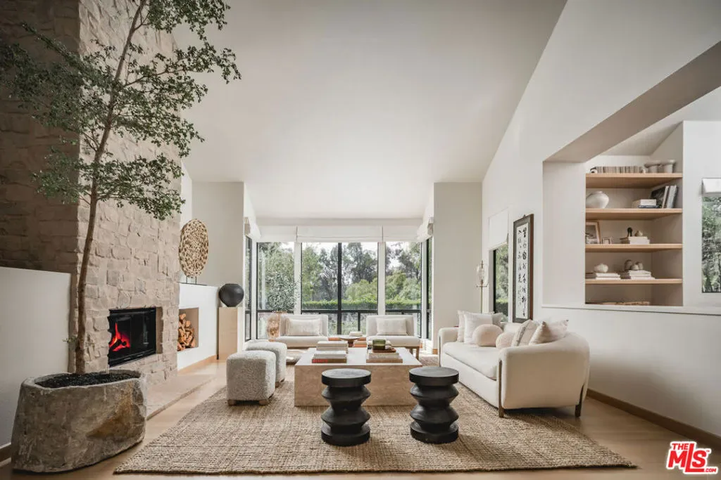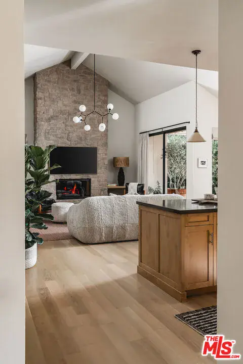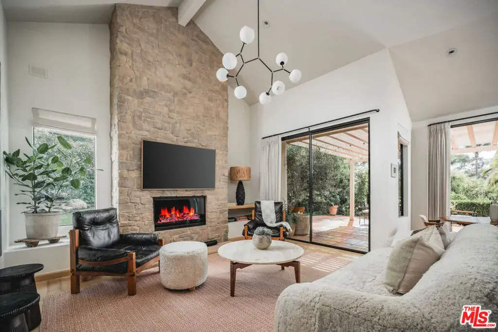 Set on a private cul-de-sac, this 3-bed/2.5-bath home with 2 offices blends timeless Spanish architecture with Jenni Kayne-inspired interiors. Spanning 2,987 sq. ft. the Montecito home highlights soaring 19-foot ceilings, sunlit interiors, and an effortless indoor-outdoor connection. Two floor-to-ceiling stone fireplaces, natural oak floors, and open living, dining, and den areas add style and function. All bedrooms open to gardens, while the sanctuary-like primary suite features high ceilings, a spa-like bath, and 2 closets. A main-level office and upstairs office loft add flexibility. Outdoors, a large patio flows to a usable grassy yard with lush landscaping. Earthy and effortlessly luxurious, it’s a rare find in the Cold Spring School District