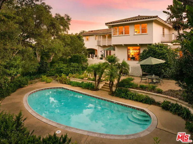 Set amid more than an acre of lush Montecito grounds, this refined residence offers a quiet sense of grandeur and an elegant, effortless way of living. A soaring foyer with a sweeping staircase and chandelier welcomes you inside, where tall windows and French doors bring in soft natural light and create a warm, inviting ambiance. The formal living spaces capture the charm of classic Montecito living. A gracious living room, anchored by a traditional fireplace, opens to terraces overlooking the pool and gardensan ideal setting for gatherings of any size. The adjacent dining room and library provide versatile spaces suited for both intimate hosting and peaceful moments at home. The kitchen is bright and thoughtfully designed, featuring an expansive center island, stone countertops, and a wall of windows that frame the gardens. With generous cabinetry and double ovens, it offers a welcoming setting for everyday living and entertaining. Upstairs, each bedroom serves as a private retreat, complete with en-suite baths and balconies that take in tranquil landscape views. The primary suite is especially inviting, offering a sitting area, fireplace, and French doors that open to a romantic veranda. Outdoors, the grounds embrace the best of Montecito’s indoor-outdoor lifestyle. A sparkling pool is surrounded by mature oaks, colorful gardens, and patios ideal for relaxation or hosting. A versatile room near the pool offers added comfort and adaptability, ideal for guests or a variety of uses. Combining privacy, charm, and enduring style, this Montecito residence embodies refined living, where comfort and elegance come naturally and each setting enhances the beauty of daily life.