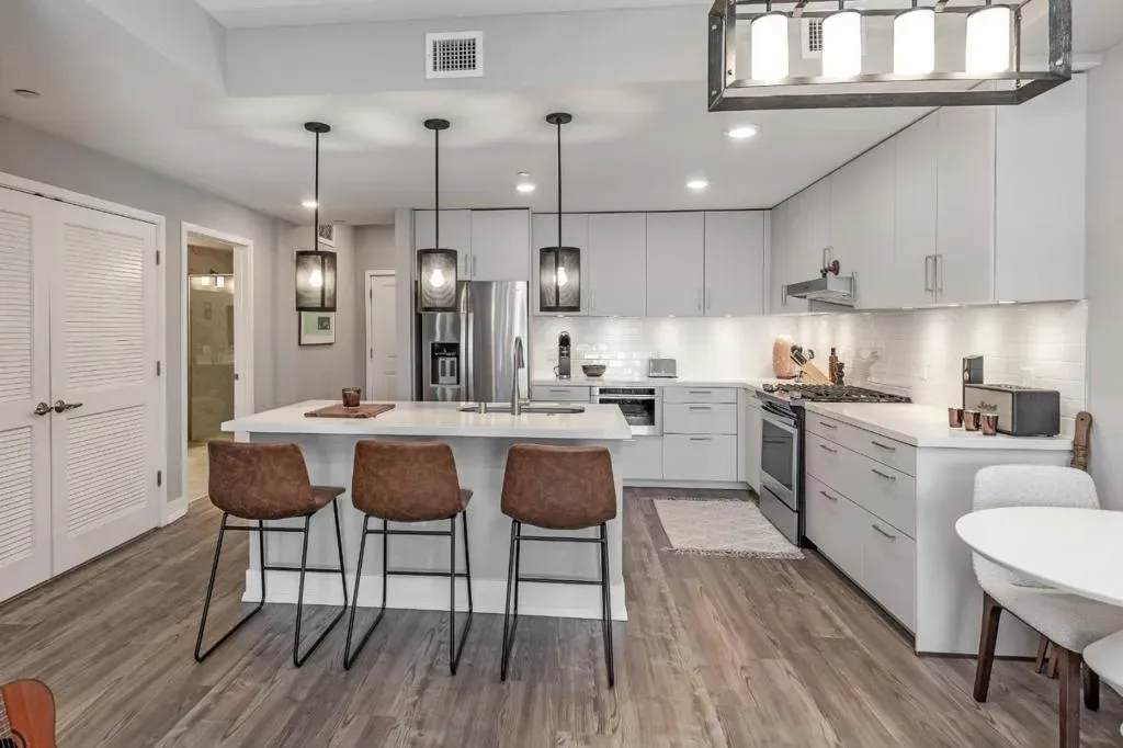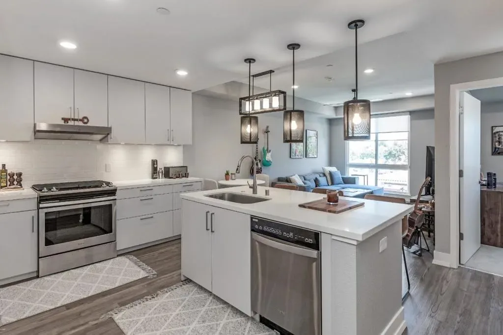 Welcome to 1048 Monroe #207! This beautifully designed 2019-built condo is in a prime, walkable Silicon Valley location. Ideally situated just minutes from Nvidia, Apple, Google, and Meta, and within walking distance to Santa Clara University and the Santa Clara Farmers Market. Santana Row and Westfield Valley Fair are both less than a 10 minute drive. This 1-bedroom condo features an open-concept layout with beautiful flooring and abundant natural light. The modern kitchen is equipped with a large island, stainless steel appliances, and ample storage, making it perfect for both daily living and entertaining. Additional highlights include a dedicated office nook, coat closet, and an oversized walk-in laundry room with a full-size Whirlpool washer and dryer. The spacious bathroom offers dual vanities and a large walk-in shower. Residents enjoy access to a fitness center, secured ButterflyMX entry, a secure mailroom, and two designated tandem underground parking spaces. Located on the second floor, the unit also provides direct access to a courtyard and BBQ area right outside your door. Don’t miss this opportunity! This home comes partially furnished with a Rove Concepts couch, a dining table, bar stools, standing desk, and media stand for added convenience.