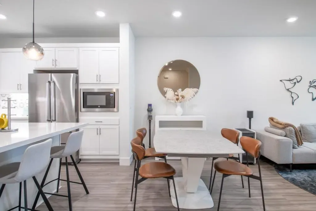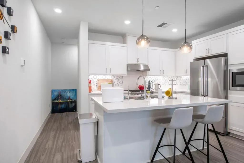Stunning 5-year-old townhouse-style home in prime Santa Clara! This well-maintained 3-bedroom, 3-bathroom residence is filled with natural light through multiple windows. The cozy living room flows into a gourmet kitchen, equipped with modern stainless steel appliances and a convenient island with a sink. The spacious master suite features a walk-in closet and an en-suite bathroom with a dual-sink vanity. The two additional bedrooms offer versatile space for guests or family. Additionally, a dedicated laundry area with washer and dryer is included for everyday convenience. Nestled in the heart of Silicon Valley, this home is just moments from leading tech campuses, including NVIDIA, Intel, Apple, and AMD. It is also ideally located only 1.5 miles from Santa Clara University, and within walking distance to Santa Clara City Hall, Civic Center Park and Rotary Park. Commuting is effortless with quick access to El Camino Real, San Tomas Expressway, and the Caltrain station. Enjoy upscale shopping and dining at nearby Westfield Valley Fair and Santana Row, with everyday essentials just minutes away at Target, Whole Foods Market, and Trader Joe’s.