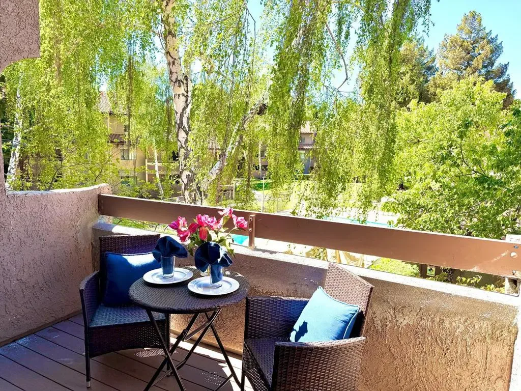 Overlooking the sparkling swimming pool, and red Spanish tile roofs in the community, this is one of the best locations in Coronado Vilas. This upper level 2-bed, 2-bath corner home comes with a private entry. Enjoy a picnic lunch on the deck on a warm California day, or retreat inside to spend time with family and friends. Enjoy both technology and convenience. Enhanced as a smart home, you can control functionality with your cell phone. Remodeled kitchen and bathrooms. Upgraded bathroom heated fans. Cozy carpet in the living areas, and convenient tile in the kitchen and bathrooms. Ample storage with two closets in the primary suite, coat closet, guest bedroom closet, and storage off deck. Reserved underground parking space and additional parking behind the building. Coronado Villas is a private, gated community in a park-like setting, with lush trees and flowers. Amenities include the swimming pool, spas, fitness center, BBQ area, car wash area, and playground. Located in the heart of Silicon Valley, near 101, 880, high tech employers, Santa Clara Town Centre (Target), Santana Row, bike trails, and Levi’s Stadium.