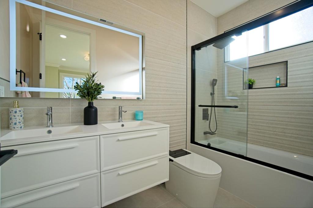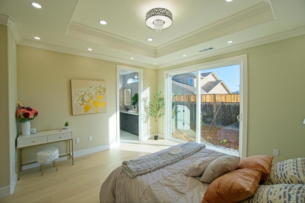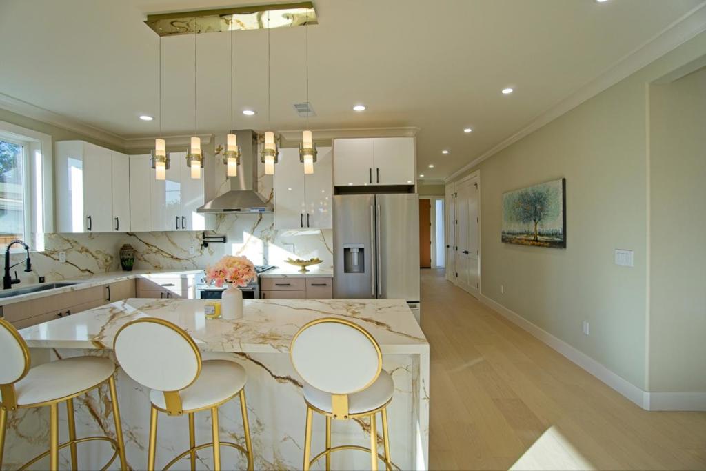 A masterfully rebuilt home (down to studs) in one of Santa Claras most connected neighborhoods. Greeted by a massive 4-ft-wide front door. This 4bd/3ba home spans approx 1,773 sqft of living space, designed with functionality and style in mind. Enjoy an airy, open feel with 9ft ceilings throughout and a vaulted ceiling with 2 skylights in the family room that enhances natural light and creates an inviting space for everyday living and entertaining. The layout provides flexibility for families, guests, or a dedicated home office, while the updated construction offers the benefits of newer systems and finishes for peace of mind. Located in the heart of Silicon Valley, this home is minutes from major employers including NVIDIA, Intel, Apple, and Google, making it an excellent option for professionals seeking a convenient commute. You’ll enjoy close proximity to everyday essentials and lifestyle amenities, including Santa Clara Square Marketplace for dining and retail, Levi’s Stadium for sports and entertainment, Santa Clara University, easy access to major highways (101, 237, and 880) With its combination of modern design, high ceilings, and a prime location near major employers and amenities, this home offers a rare opportunity to enjoy both comfort and convenience in Santa Clara.