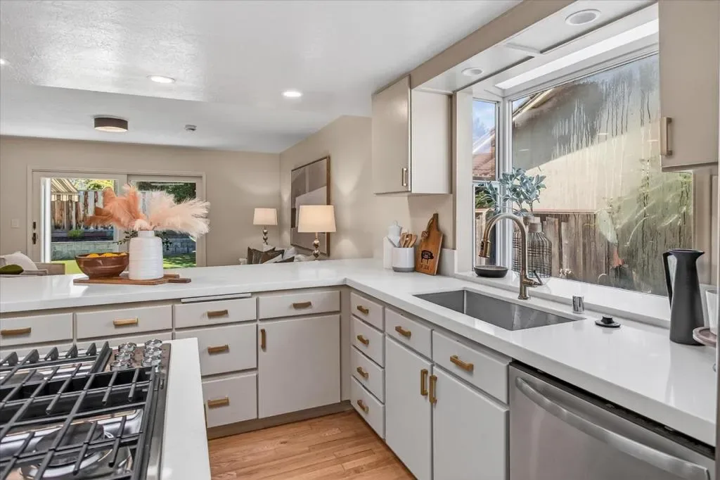 Fully remodeled Santa Clara home with exceptional updates throughout. Freshly painted inside and out, featuring newly refinished hardwood floors in main living areas and new carpeting in all bedrooms. The chefs kitchen boasts quartz countertops and all-new stainless steel appliances, including a double oven, microwave, refrigerator, and gas range. All bathrooms have been beautifully renovated with new showers, tubs, fixtures, lighting, and flooring. Designed for both comfort and entertaining, the home offers a separate family room off the kitchen, a step-down living room, and a formal dining room, with fireplaces in both living and family rooms. New lighting enhances the home throughout. The nearly new primary suite includes dual sinks, an oversized shower, and updated fixtures. Owned solar helps keep utility costs low. Both front and back yards are refreshed, featuring a Heavenly Greens-style lawn, a mature producing avocado tree, and additional fruit trees. The attached sunroom includes a roll-out European-style awning for added shade. Top-rated schools nearby. Conveniently located near dining, shopping, and grocery stores, about 2 miles to Valley Fair and 3 miles to Apple Park, with easy access to Hwy 280 and Lawrence Expressway for an easy commute to major tech hubs.