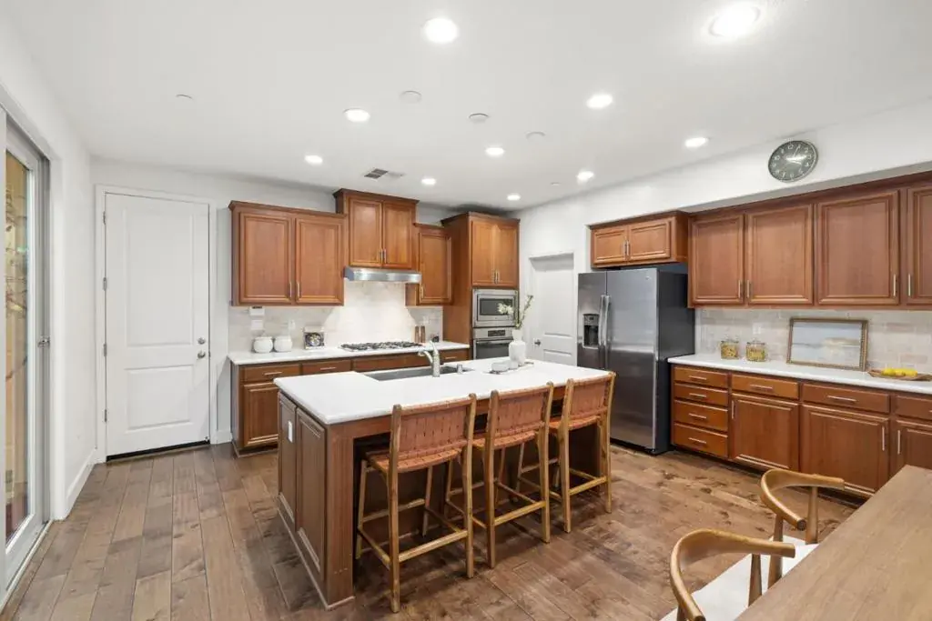 Newer Single Family Home built in 2015. The main level features a bright, open-concept floor plan anchored by a chefs kitchen with a large island, gas range, walk in pantry, perfect for both everyday living and entertaining. Sliding glass doors lead to the side yard, seamlessly blending indoor and outdoor spaces. The luxurious primary suite boasts an oversized spa-style bathroom with double-sink vanity, walk-in shower, soaking tub, and a spacious walk-in closet. HOA covers garbage service, also provide swimming pool, hot tub, BBQ area, playground, and a trail. Ideally located near top tech employers including Apple, Nvidia, Google, and Amazon, as well as highly regarded private schools such as Stratford, Challenger, BASIS, Monticello, and Harker. Enjoy walkable access to Safeway, parks, library, Magical Bridge Playground, sports courts, swimming club, Santa Clara Recreation Center, and a wide array of dining and shopping options.