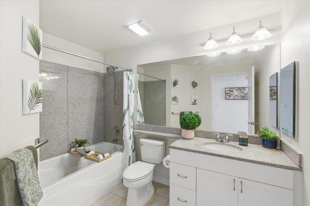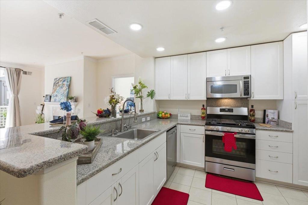 Bright, spacious, and beautifully appointed, this Miraval two bedroom, two bathroom home blends luxury and convenience. Enjoy a picnic lunch on the deck, overlooking the interior of the community. Or sit by the fireplace and read a book. The living room provides an abundance of natural light and carefree hardwood laminate flooring. Cozy carpet in the bedrooms meet the convenience of tile in the kitchen. The kitchen features granite countertops, gas cooking, recessed lighting, and stainless steel appliances, including a brand new refrigerator. A full-size washer and dryer sit behind the kitchen. Ample storage with a walk-in closet in the bedroom, and storage off the deck. The home has two underground parking spaces close to the elevator. Miraval’s location is superb, next to Rivermark Plaza. Walk to Safeway, Red Robin, Peet’s Coffee, Chipotle, Rise, Poke House, and the many other nearby restaurants and shops. Drive to Levi’s stadium, or enjoy the adjoining walking and bike trails. Conveniently located between Freeway 101 and Interstates 880 & 680. Or simply stay home and enjoy all the amenities – the lap pool, spa, gym, community movie theater, and BBQ area.